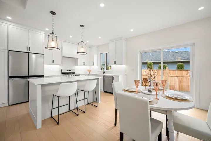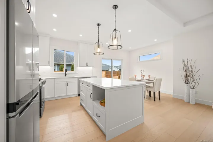 Located in a rare boutique community of just 13 bare-land strata homes, quietly tucked into a sought-after Comox cul-de-sac, this bright 2-bedroom, 2-bathroom home offers thoughtfully designed living with quality finishes throughout. The open-concept layout features 9’ ceilings, engineered hardwood floors, and a modern kitchen with quartz countertops, a gas stove, and stainless steel appliances. A heat pump provides efficient year-round comfort, while the functional floor plan offers flexibility for family, guests, or a home office. Enjoy low-maintenance outdoor space in a peaceful setting surrounded by newer homes, all conveniently close to Comox amenities—an ideal opportunity to right-size without compromising comfort or lifestyle.
