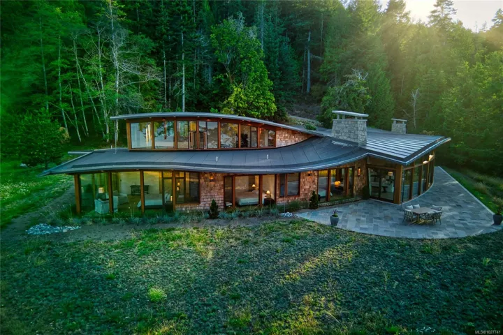 Foreign-buyer ban exempt! Presenting the offering of an architecturally significant home in the Gulf Islands – the Point House, by notable West Coast Modern architects Bo Helliwell and Kim Smith of Blue Sky Architecture. This exquisite waterfront home is situated on a 104.8 acre estate on North Pender Island that overlooks Navy Channel and faces the sun-illuminated mountains of Mayne Island. The property includes a sustainable organic farm, the shoreline of Davidson Bay, a 50 foot dock, an idyllic pond, and acres of untouched old-growth forest.