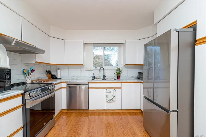Discover the gem of the complex at 3987 Gordon Head Road—an exceptional end-unit townhome that shines with $200,000 in upgrades completed in the past four years. This meticulously maintained residence blends modern comfort with thoughtful design, featuring bright, open-concept living spaces and expansive natural light throughout. The well appointed kitchen, upgraded flooring, newly installed and upgraded bathrooms make every detail feel brand new. Enjoy the privacy and tranquility of an end unit, surrounded by lush landscaping and a spacious patio perfect for entertaining. A newly installed mother-in-law suite offers incredible flexibility for extended family or rental income potential. Conveniently located near parks, UVic and shopping, this home captures the best of Gordon Head living—a rare opportunity where luxury, location, and value meet perfectly.