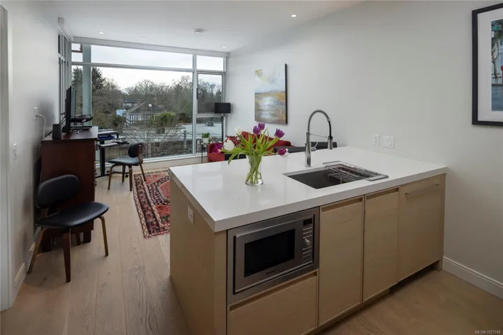 The Redfern is one of the finest modern buildings constructed by Jawl Properties & is situated in one of Victoria’s most desirable neighbourhoods. This one bed residence is located on the South Side of the building & fts a beautiful sun-drenched deck. Only 29 luxury homes are situated in a village setting that offers shops, cafes, pubs, beaches, schools & parks – within walking distance. Built to last w/ concrete & steel construction, oversized indoor & outdoor spaces & unmatched functional luxury, your home will be comfortable year-round w/ energy-efficient forced air heating & air conditioning. Enjoy modern living in a lush neighbourhood with trees. Spa baths & dream kitchens are designed to impress w/ extensive Italian millwork, integrated hidden refrigerator & dishwasher, Wolf professional gas cooktops, Fisher-Paykel appliances & dbl-thick quartz countertops. This residence offers just under 550 sqft of living space, in-suite laundry & patio. An ideal home for the discerning buyer.