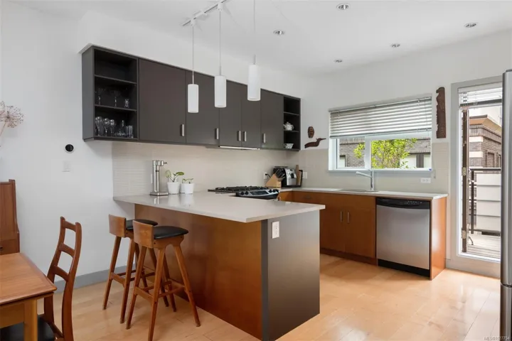 Tucked away on the edge of Downtown, this townhome offers 3 full levels of interior living plus a private rooftop level dedicated to outdoor entertaining, creating a sense of space and separation seldom found in an urban setting. Set just off the Upper Fort district & bordering Fairfield & Rockland, the location is quietly residential, framed by mature trees, while remaining moments from cafés, shops & daily amenities. Inside, the layout unfolds thoughtfully across multiple levels, with 2 beds & 3 baths providing flexibility for everyday living, hosting, and working from home. The entry level includes a garage & flex space, while the main living floor connects the kitchen, dining area, and an additional balcony for casual outdoor use. The second bedroom is a standout, featuring soaring ceilings that add volume and architectural interest. Above it all, the rooftop patio offers generous space for barbecuing, gathering with friends, or unwinding outdoors in a private, elevated setting.