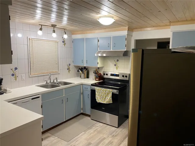 Haida Gwaii oceanfront family home with ocean views, walk-on beach front, expansive lawn and a 10×24 workshop/shed. The split level entry home faces the ocean, with large picture windows in the living room providing views across the water. The kitchen is bright and cheery, with a light wood shiplap ceiling, pale laminate wood flooring and white tile backsplash and wall treatment. Downstairs is partially finished with a bedroom and family room, and the remainder as unfinished space. Several additions and alterations in the last couple of years include new gutters, new wood siding for part of the house, new paint for the top floor, new paint in the family room, completely updated main bathroom, new kitchen appliances, new kitchen floors, updated kitchen hardware, and new stair treads. A large oceanside deck wraps around the front of the home. The home is five minutes from the centre of town, schools, library and community centre. Zoning allows for short-term rentals and secondary suites.