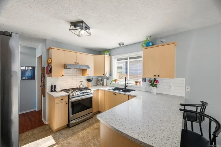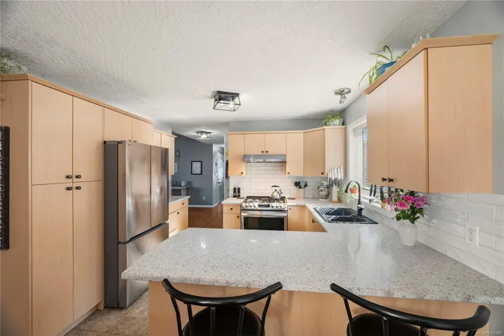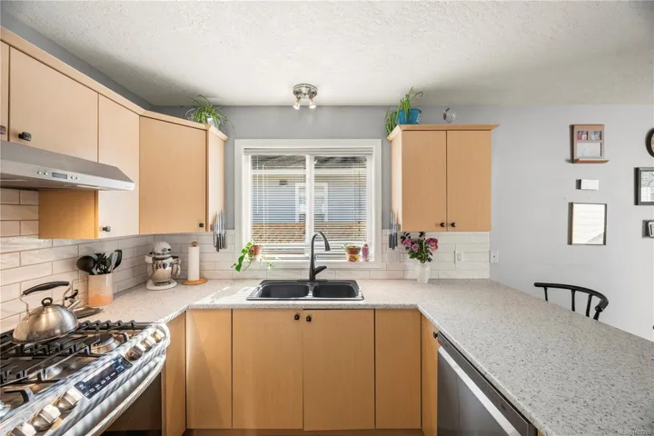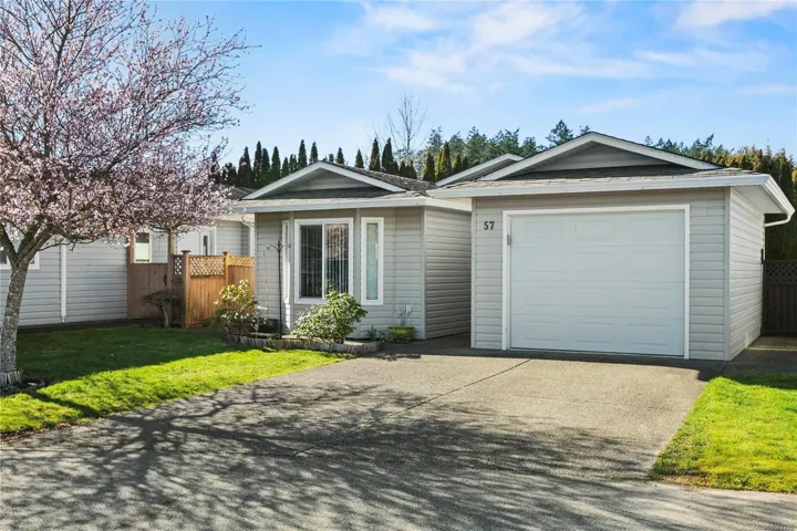 Welcome to Hawthorne Village, an exclusive community where nature and serenity set the tone for everyday living. This charming single-level rancher offers the perfect blend of comfort, lifestyle and value. Enjoy a bike ride along Lochside Dr to Marigold Café, explore the shops and restaurants of Sidney by the Sea just minutes away, or simply relax in your private, low-maintenance garden filled with blooming flowers, garden beds, privacy hedging, and a small lawn perfect for pets. Inside, the thoughtful layout features a spacious living room with a cozy fireplace and a bright kitchen with a breakfast nook that opens to a sunny west-facing patio. The primary bedroom has its own ensuite and walk-in shower. Parking is easy with space for two in the driveway plus an attached garage. Dogs and cats are welcome and one resident should be 55+ Other features include: laminate flooring, skylights, heat pump, leaf guard gutters, propane stove. Reach out to make this your new home!