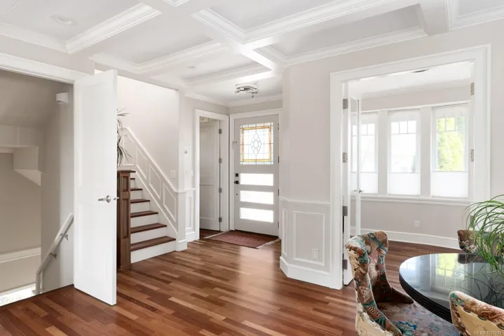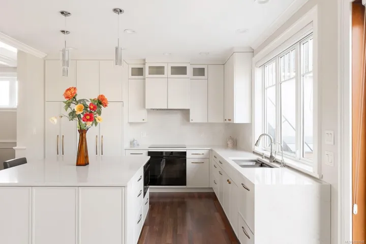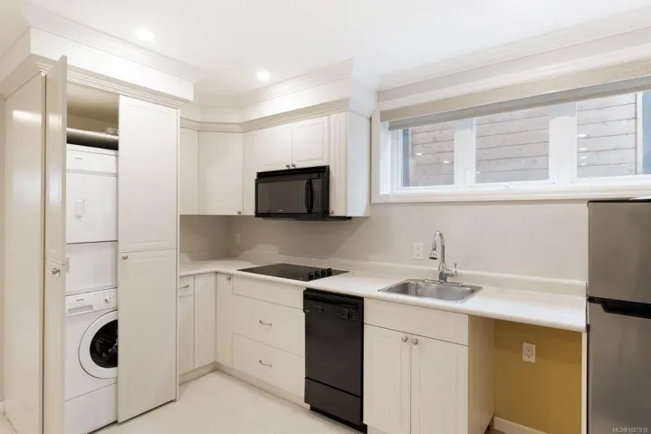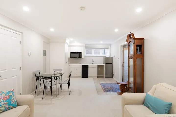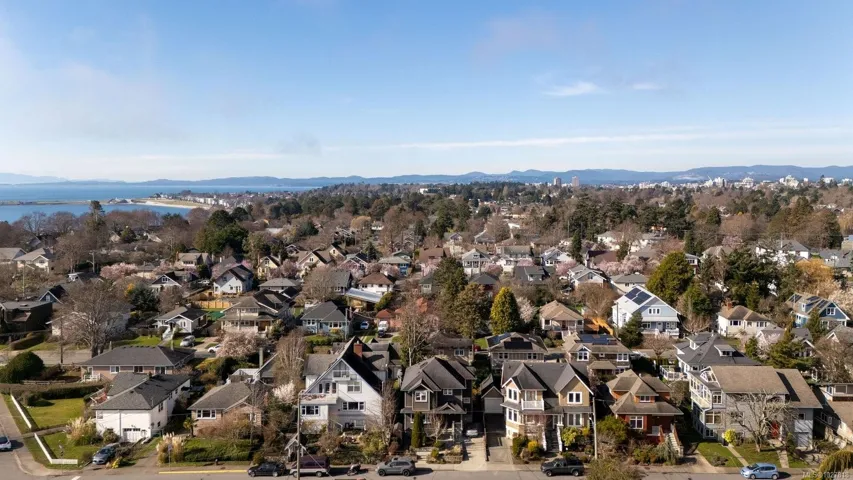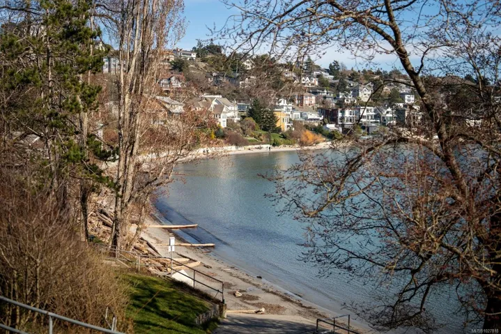 Ideally located in one of Victoria’s most sought-after seaside neighbourhoods, just steps from Gonzales Beach, this beautifully updated home + suite offers refined coastal living only minutes from downtown. The bright open-concept main level features in floor heating, a light-filled island kitchen with premium appliances, an elegant living room with a gas fireplace, a den/office, a dining nook, and a powder room. There is easy access to a manicured garden where easy-care landscaping meets peaceful privacy. Upstairs has a primary suite featuring a spa-inspired ensuite and ocean views, complemented by a second bedroom, a full bathroom, a laundry room and a versatile loft area. The lower level offers a private one-bedroom suite with its own entrance and in-suite laundry, ideal for guests, extended family, or additional income. Light-filled, tasteful, and move-in ready, this exceptional home is just steps to the ocean and close to downtown Victoria’s vibrant amenities.