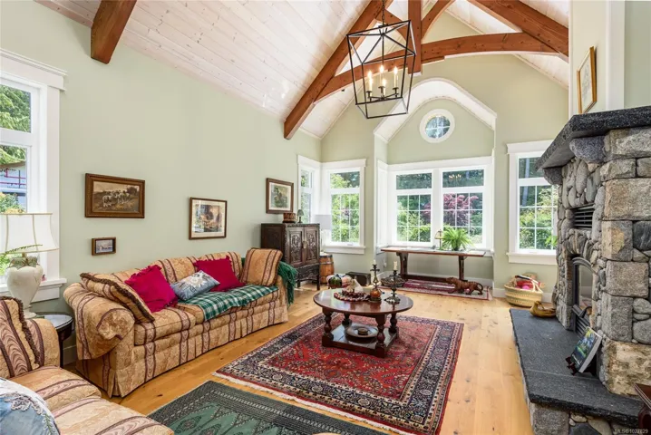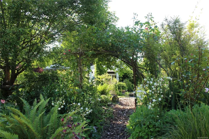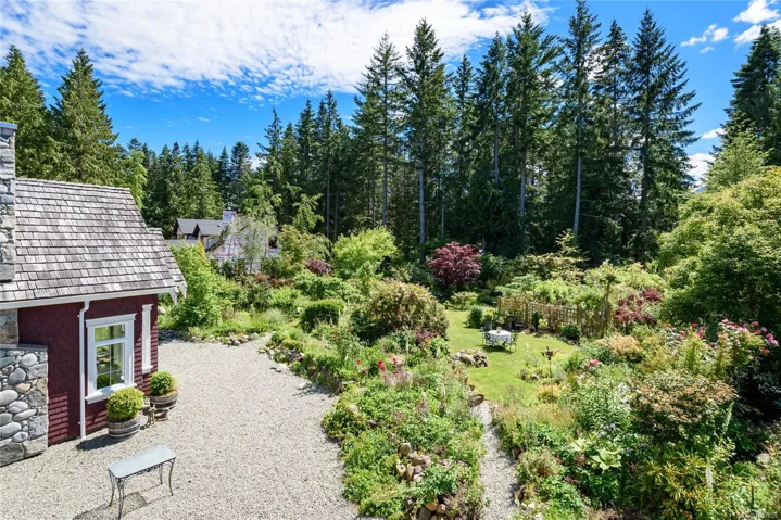 This custom 2-storey home has 2 beds and 4 baths, encircled by an elaborate and elegantly landscaped 1.14 ac yard, a premier home with luxurious finishes. Exterior features: paved drive and walks, small views of Beaufort Mts, fenced vegetable garden and much more. Interior features: in the kitchen, soft close drawers, Miele appliances, black walnut island, farmer’s sink, with butler’s pantry adjacent. Elsewhere: live edge, marble, quartz counters, white washed pine ceiling, hardwood and tile flooring, handcrafted fir beams, 20’ ceiling in great room, granite/river stone accented wood fireplace, cedar lined closets, maple-panel 2-car garage. The beach, an easy 100 step stroll. Guest cottage with strong structure, ready for development. Infrastructure includes: radiant heat and heat pump with HRV, 200 service, generator back up, security system, rain water collection, remote heaters on patio, dog bath, skylights, greenhouse. A first-hand view is the only way to appreciate this property.