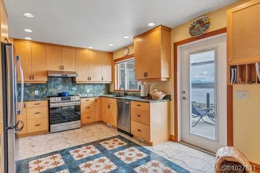 Magnificent ocean, Island, Coast Mountain and marine traffic views from this extraordinary home. Features include an open plan Living/ eating/Kitchen area all with large windows overlooking the ocean. Access onto a frontage decking with rail free clear glass panels and a covered Barbeque/eating area. A warm and cosy Living room with gas fireplace and hardwood flooring. A lovely granite countered Kitchen with Spanish tiled floor and stainless-steel appliances. Master bedroom with ocean views, deck access and a new bathroom ensuite. A Wheelchair friendly upper level throughout + 2nd & 3rd bedrooms. Lower level includes 2 additional Bedrooms a full four-piece bathroom, comfortably Family/Television area with efficient gas fireplace and good natural lighting from custom, south facing windows. 9ft ceilings and access to the covered patio and garden. Add all this to the attached double garage, ample parking, quality construction, this all ads up to a brilliant package.