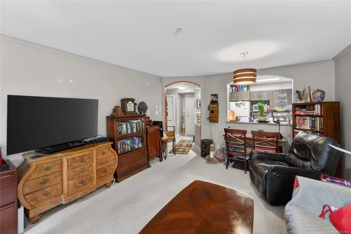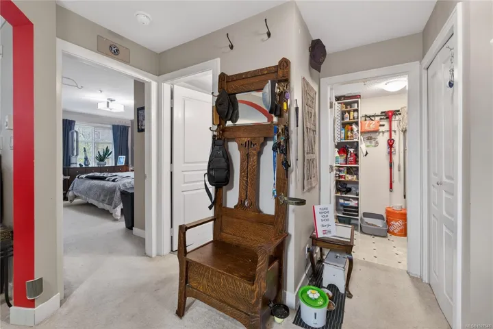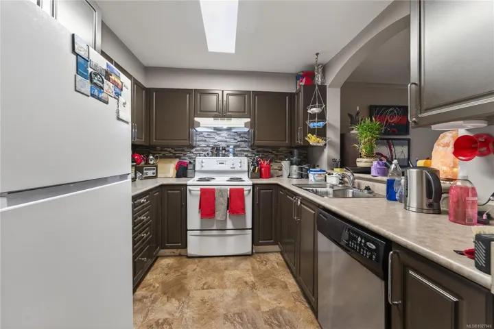 INVEST IN SERENITY. Discover the perfect blend of CONVENIENCE and TRANQUIL LIVING in this centrally situated condo with NATURE OUTLOOKS. Nestled against the backdrop of CHRISTMAS HILL, this 705 SQ FT home offers a PRIVATE BALCONY overlooking a lush GARRY OAK GROVE. The KITCHEN features a STYLISH BACKSPLASH and functional layout, with a large pass through to the living room. A LAUNDRY ROOM/PANTRY provides storage. Located near SWAN LAKE NATURE SANCTUARY, there are plenty of walking opportunities to explore. Enjoy easy access to UVIC (20 MIN DIRECT BUS), UPTOWN MALL, and major highway connections to all of Greater Victoria. A 12 MINUTE DRIVE DOWNTOWN, this unit offers unbeatable connectivity for students or professionals. Rain Screen exterior. One dog or cat up to 12kg (26lbs). BBQS allowed. 1 Parking space.
