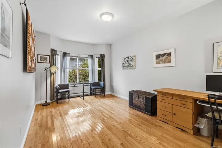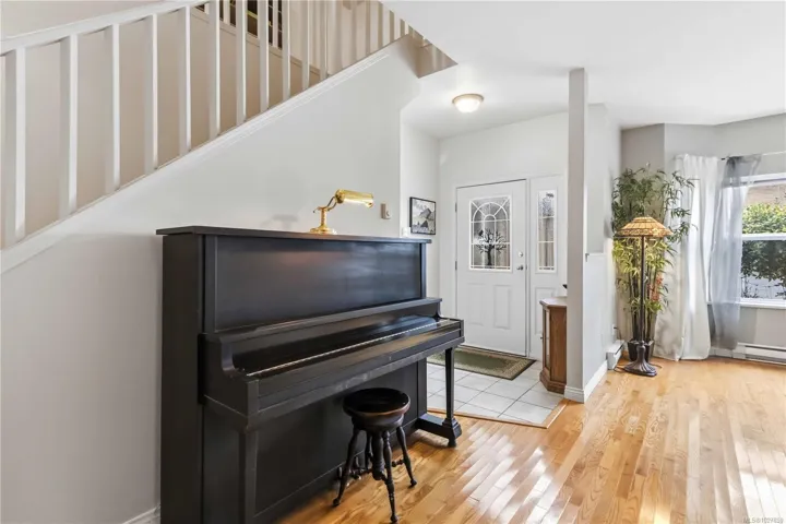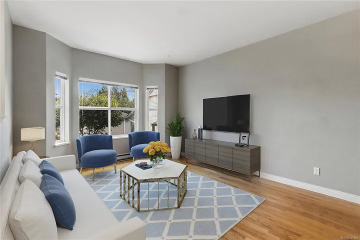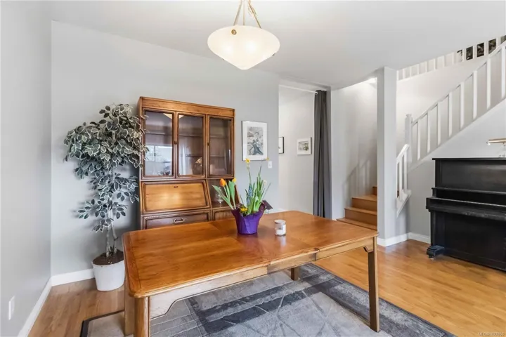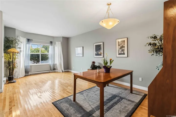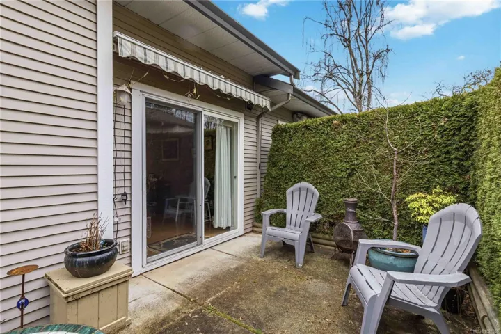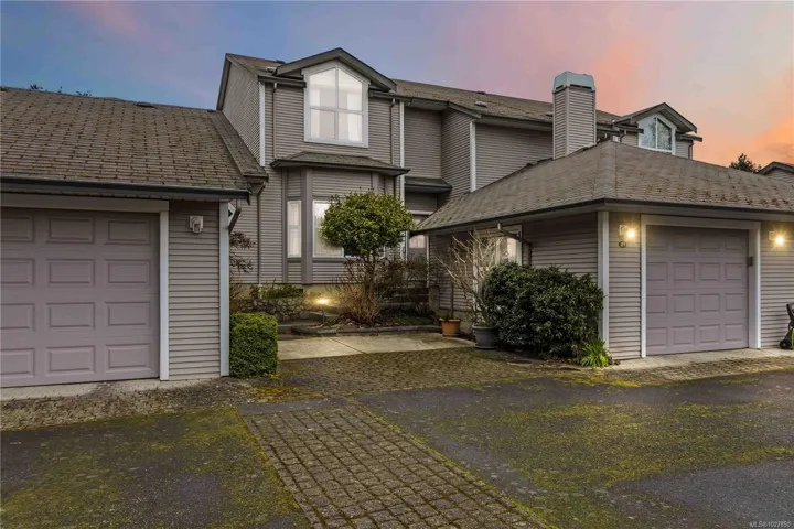 This townhouse spans over 2,150sf of living space on 2 levels with 3 spacious bedrooms, 2.5 bathrooms PLUS GARAGE! This awesome floor plan has plenty of bonus storage and expansive rooms that make it feel more like a house. The largest unit in this well run complex, situated in a quiet setting while being ideally located close to great schools, UVic, shopping and transit! PRIMARY BEDROOM SUITE ON MAIN FLOOR is large! has large walk-in closet and ensuite. Downstairs features 9′ ceilings, 2 pc powder room, laundry room w/ garage access. Attractive living room with bay window, spacious dining room & large kitchen. Family room off kitchen has feature gas fireplace and glass sliders to a pretty patio area with charming hedges and established perennial landscaping. Upstairs has 2 Bedrooms, large landing/office area, vaulted ceilings, storage room & bathroom with skylight. Buyer to verify measurements/floor plan if important. Floor Plans, 3D Tour, Videos all online!