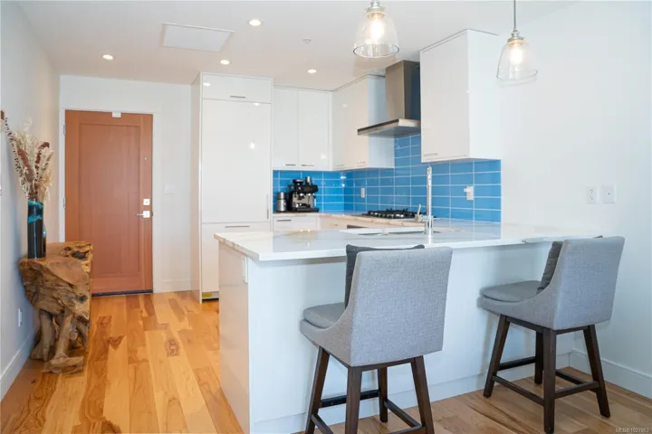 Perched above Westbay Harbour, this beautifully finished 1 bed, 1 bath condo offers a refined take on waterfront living, with serene water views and sparkling city lights from your private balcony. Thoughtfully designed with clean lines, high-end finishes, and a modern layout, the space feels both elevated and easy to live in. The meticulously planned kitchen caters to both aspiring chefs and seasoned hosts, appointed with premium Blomberg and Fisher & Paykel appliances. Steel and concrete construction speaks to lasting quality, while features like heating and cooling, heated bathroom floors, roller shade blinds, dimmable LED lighting, and access to EV charging stations add everyday comfort and convenience. With Marina Bay Café just downstairs, the Westbay Walkway minutes from your door, and dedicated kayak and bicycle storage with easy access to the water, this is a home that fully embraces its waterfront setting.