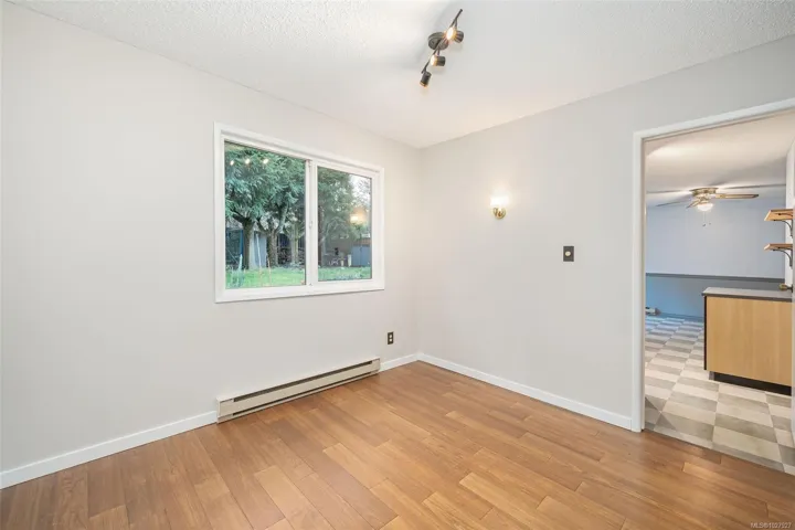 A charming rancher in Nanaimo’s sought-after Uplands neighbourhood offering 3 bedrooms+den,2 baths and comfortable one-level living. Ideally located within walking distance to Uplands Elementary School, this home is perfect for families or downsizers seeking convenience in a friendly community. Freshly painted, the home feels bright and welcoming throughout.The functional layout includes a versatile den, perfect for a home office, hobby room, or extra living space. Beautiful hardwood flooring runs through the main living area, with new flooring in the bedrooms and the cozy wood-burning fireplace adds warmth and charm.French doors open to a private,fully fenced backyard with fruit trees and space for kids,pets,gardening or relaxing outdoors.The heated garage adds year-round versatility.Situated on a 7,547 sq ft lot on a quiet street, the home also offers accessibility features including a ramp and accessible entrance. A great opportunity close to schools, parks, and everyday amenities.