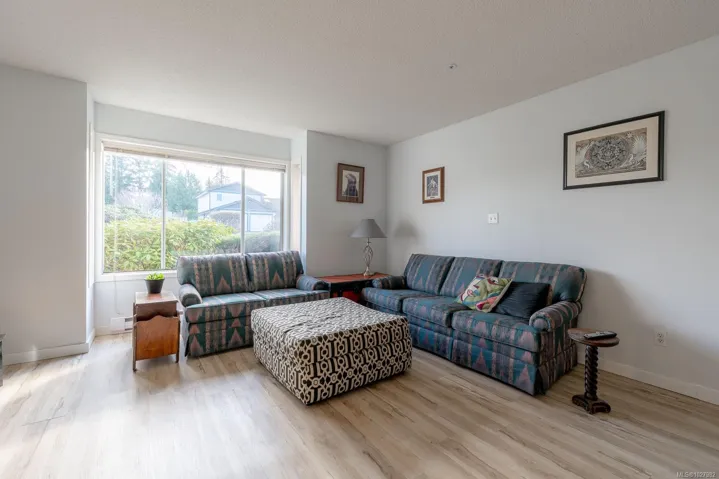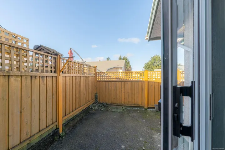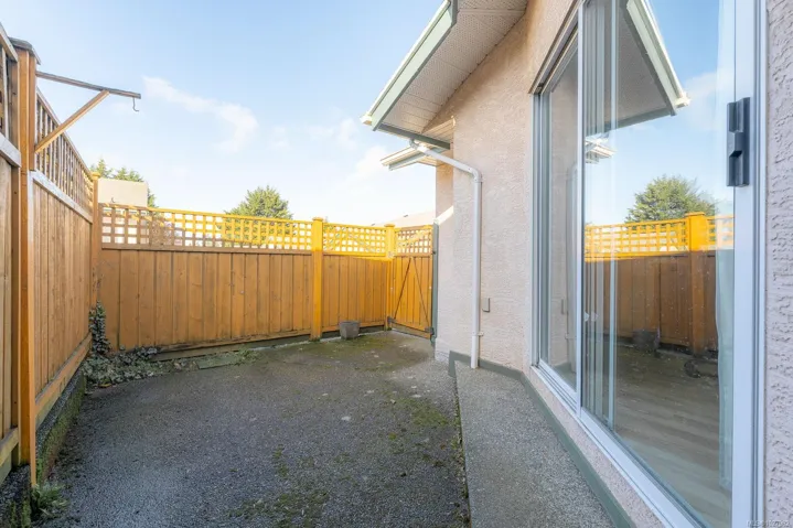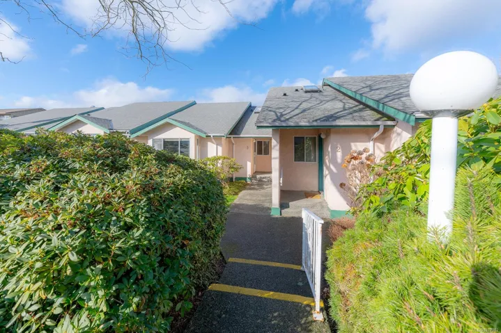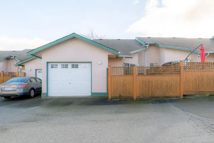 This nicely updated 2-bedroom, 1-bathroom patio home offers 913 sq ft of comfortable single-level living in a well-managed 55+ strata community in central Nanaimo. Recent improvements include updated flooring, fresh paint, and modern fixtures, creating a bright, clean, and move-in ready space. The functional layout provides a spacious living area, a practical kitchen, and two bedrooms that work well for guests or a home office. The home features a private front entrance, along with a fenced and private rear patio—perfect for relaxing outdoors. Additional conveniences include in-suite laundry, garage parking at the rear of the complex, and street parking available out front. Pets are allowed, adding flexibility for pet owners. Ideally located just minutes from Nanaimo Regional General Hospital, shopping, restaurants, parks, and everyday amenities, making it an excellent option for those looking to downsize or enjoy easy-care living in a central location.