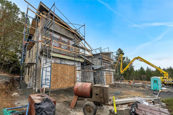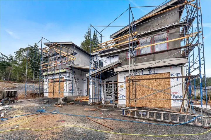 Under construction on Olympian Way, this brand-new luxury home offers a rare opportunity to own a sophisticated, modern sanctuary. A stunning high-ceiling entrance welcomes you into an expansive, open-concept main floor featuring a sleek electric fireplace and a gourmet kitchen illuminated by elegant under-cabinet lighting. This level also includes a private office/den and a convenient powder room. Upstairs, the primary suite is a true retreat, featuring a walk-in wardrobe and a spa-like 5-piece ensuite. Experience year-round comfort with a ducted heat pump throughout and heated floors in all full bathrooms. Modern convenience is built in, with a single-car garage featuring a rough-in EV charger. Outside, enjoy a private patio and a fully fenced yard, perfect for pets or quiet relaxation. In a secluded, tree-lined setting, this home provides a peaceful atmosphere just minutes from essential amenities and the Olympic View Golf Course.