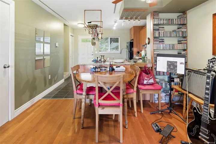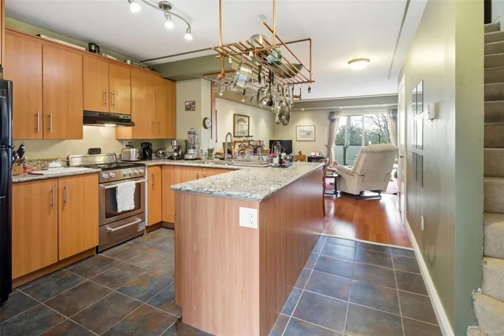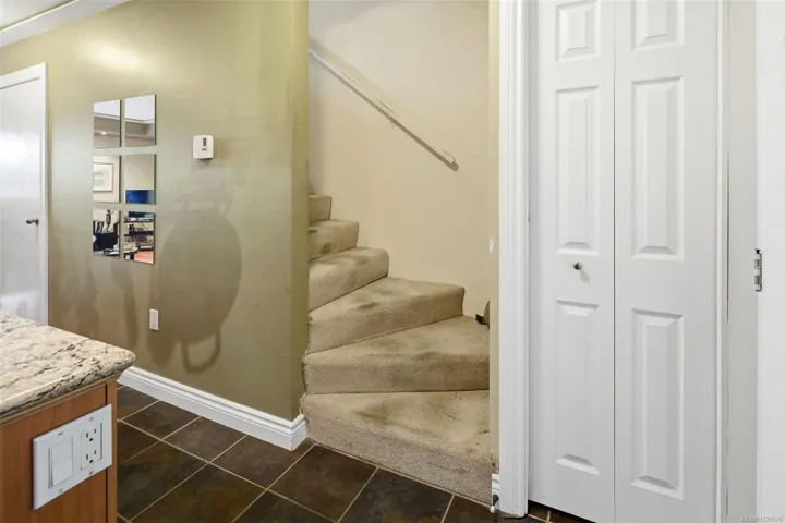 Welcome to the beautifully updated 991 Cloverdale! This unique two-level condo stands out as one of the best in the complex, featuring a custom open floor plan and extensive updates inside and out, including exterior refit with new siding, windows, decking, & roof. Inside, you’ll find a modern kitchen with striking Floform countertops, custom cabinetry, a stylish wine glass rack, and great lighting. Engineered hw flooring flows throughout the main living space, leading to an open-concept living and dining area that opens onto a west-facing deck—perfect for enjoying peaceful park views, mature trees, and glimpses of the Sooke Hills. Upstairs offers two generously sized bedrooms with excellent closet space, along with a well-appointed bathroom that includes in-suite laundry. Located in a central neighborhood, you’ll appreciate having groceries, transit, & amenities just a block away. The home also includes parking. This move-in-ready home combines style, comfort, and convenience.