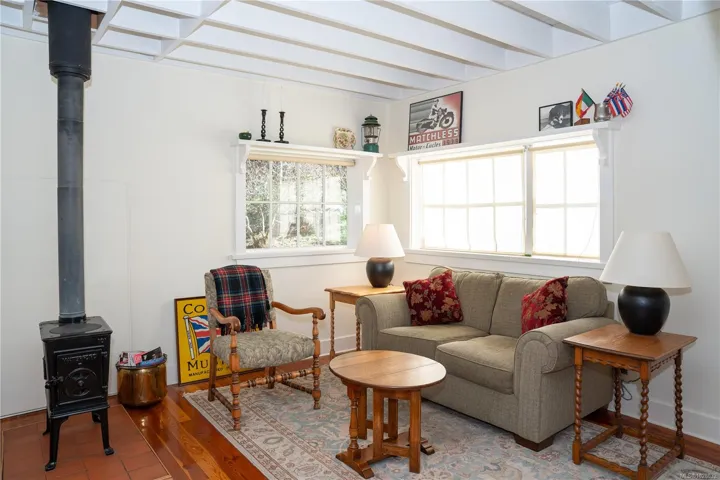 Lovingly built, the inviting inside offers exceptional character with original fir floors, crown moldings, multiple built-ins, mullion windows, decorative sills, French doors, custom stained glass, rounded door frames and a darling woodstove.