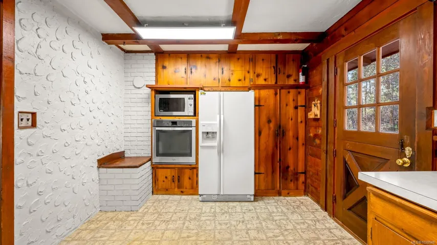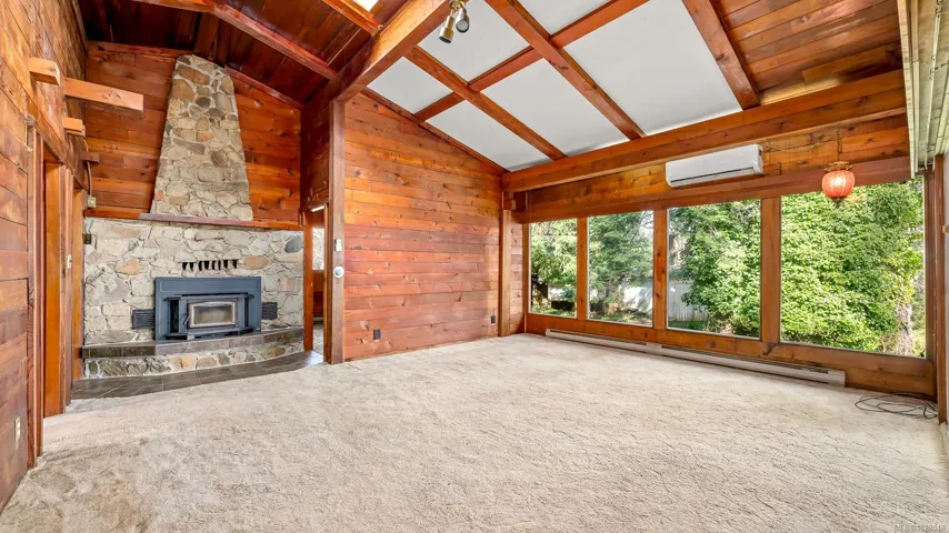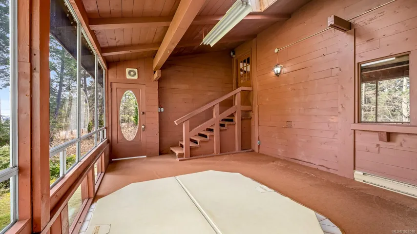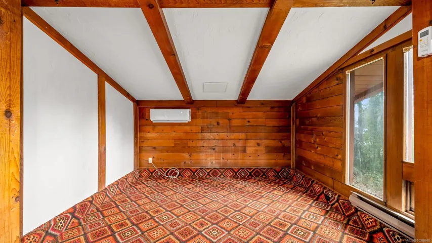 Escape to the tranquillity of the seaside community of Fanny Bay. This charming 1,842 sq ft, 3-bedroom, 2-bath home offers the warmth & character of a partial log-home design, set on a generous 0.82-acre property with peek-a-boo ocean views.Thoughtfully crafted with solid 4×4 tongue-and-groove cedar logs, the home features striking timber beam accents that create a welcoming West Coast lodge atmosphere. The inviting living space blends rustic charm & modern comforts with a cozy wood-burning fireplace & an efficient heat pump for year-round climate control. Additional features include guest suite, an attached workshop, greenhouse, & mature trees that enhance the peaceful setting and offer wonderful space for hobbies, gardening, or outdoor enjoyment. Surrounded by tranquil rural landscapes, this property provides the ideal balance of privacy, nature, & coastal living, while remaining just minutes from everyday amenities and major shopping in Courtenay and Comox.