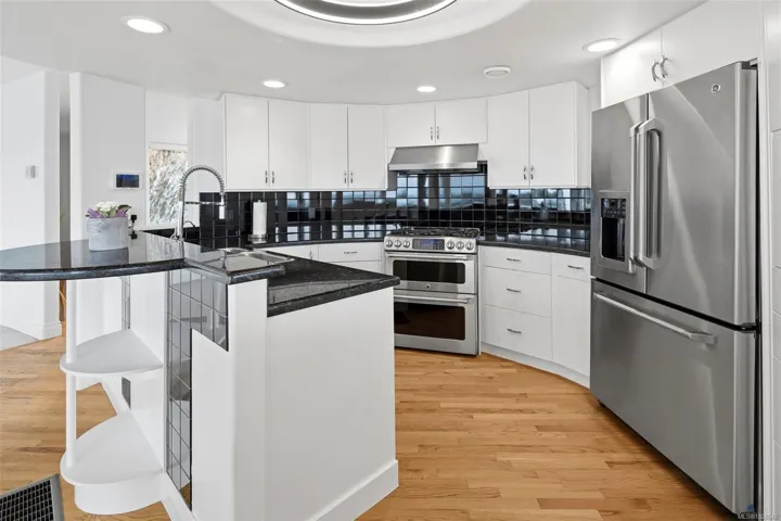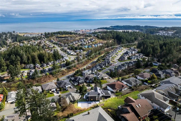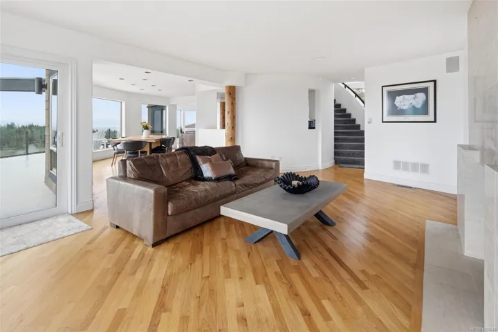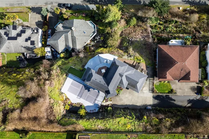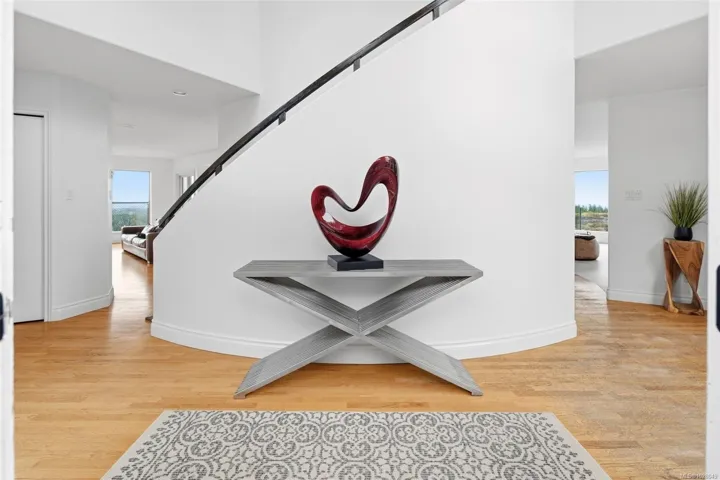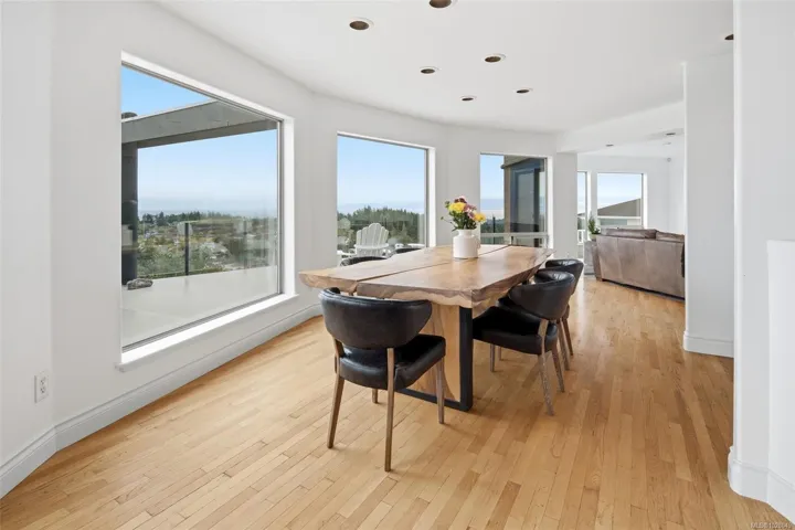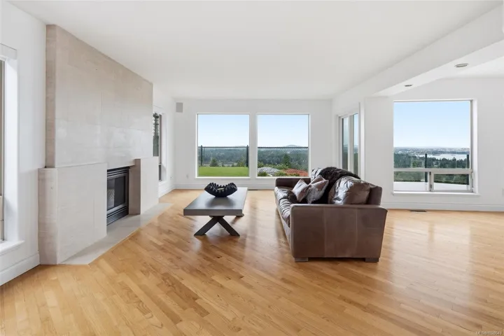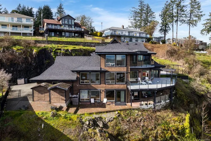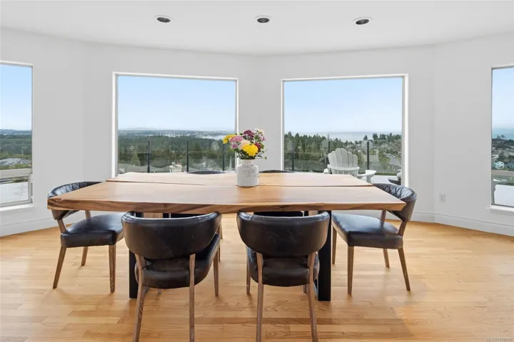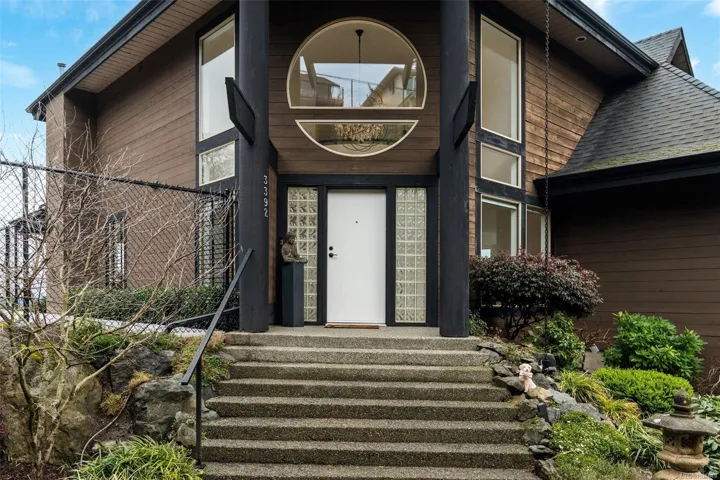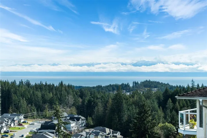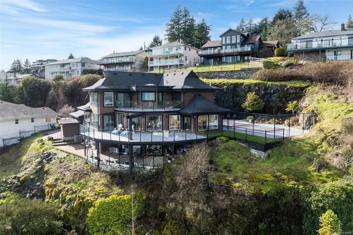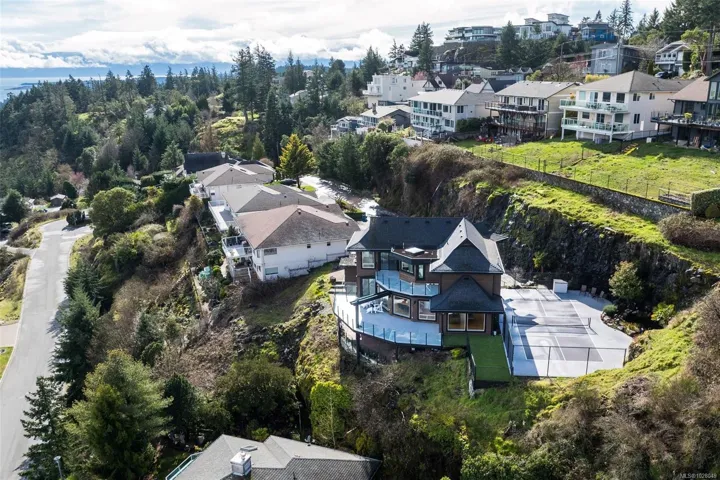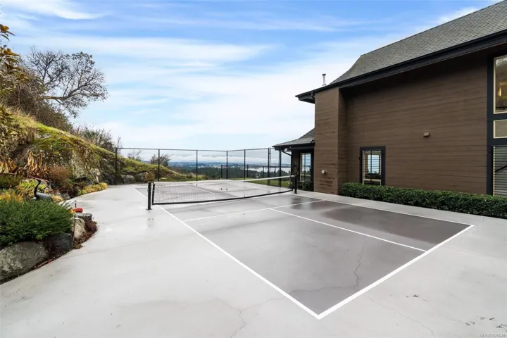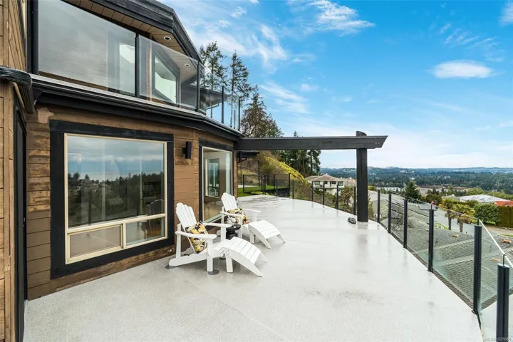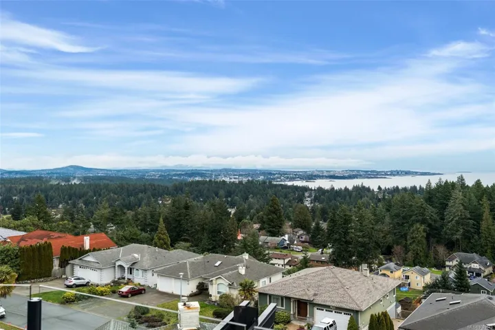 Perched on a private lot, this exceptional 5-bed, 5-bath home offers some of the most breathtaking panoramic views in Greater Victoria, capturing Mount Baker, the Olympic Mountains, the Salish Sea, and the entire city skyline. The bright open-concept main floor features a spacious family room, dining area, and living room designed to maximize natural light and stunning vistas, plus a flexible bedroom or office. Upstairs offers a beautiful primary retreat with a 5-piece ensuite, walk-in closet, and large deck, along with another bedroom and full bath. The lower level provides outstanding flexibility with two self-contained living spaces: a 1-bedroom in-law suite integrated with the main home and a separate 1-bedroom suite, both with their own entrances and laundry, ideal for extended family or rental income. The outdoor space is equally impressive with a pickleball court, landscaped grounds, and a tranquil pond with waterfall, creating a private retreat just minutes from all amenities.