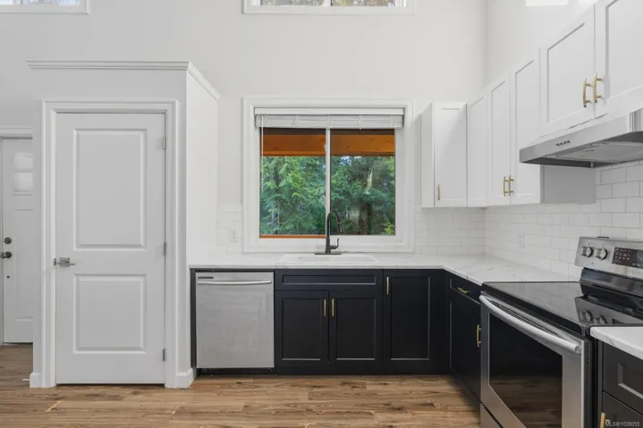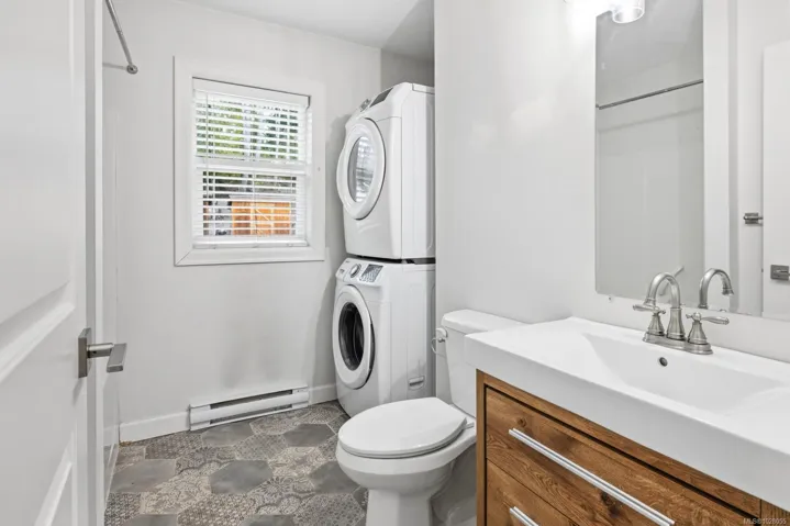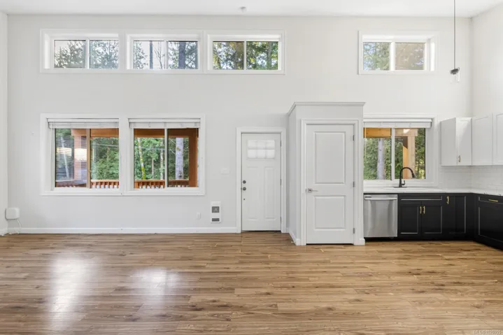 Cute carriage home on a ½ acre lot in sought after Shawnigan Lake. Zoning permits construction of a detached primary residence, offering an excellent opportunity to live comfortably while planning your future build. Ideally located close to Shawnigan Lake access and village amenities. A large south facing covered veranda welcomes you into the bright open plan living, dining and kitchen area. Vaulted ceilings with upper windows flood the space with natural light, creating an airy cottage feel. The home features two generously sized bedrooms and a 4-piece bath with convenient in suite laundry. Exterior finishes include classic cedar board and batten siding, with additional storage provided by two 6×10 sheds. A perfect Shawnigan Lake property to enjoy now while designing and building your dream home.