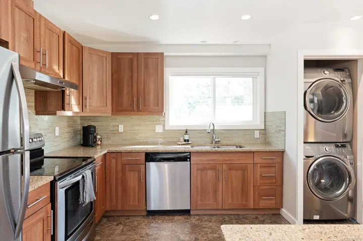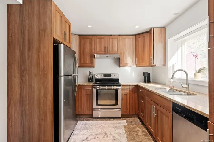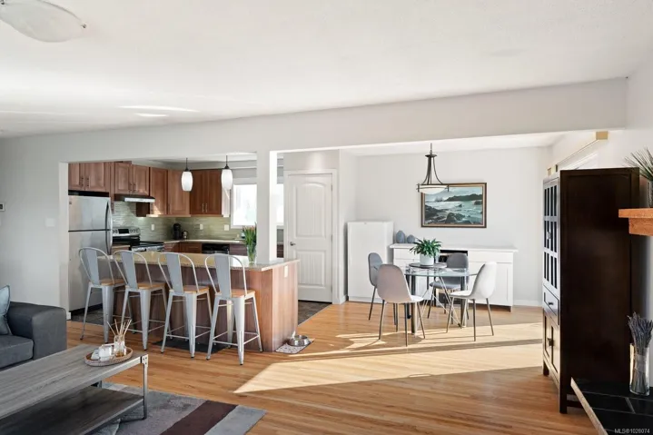 Well-maintained and move in ready, this 1965 home offers exceptional flexibility and comfort. The open-concept main level features 2 bedrooms and 1 bathroom; with refinished hardwood floors, a great kitchen with quartz countertops, new cabinetry, power window coverings, and an amazing deck with great sun exposure. The lower level offers a fully self-contained 2 bed / 1 bath suite—perfect for income or extended family—or easily convert back to a 4 bedroom home with the original stairs still intact. Major upgrades include a heat pump, new siding, windows, patio decking with vinyl and railings, refaced front entry, and a newer roof (2020). Enjoy an expansive backyard backing directly onto a park. Ideally located with quick access to downtown, the airport, ferries, schools, bus routes, parks, and everyday amenities. A fantastic opportunity in a central, convenient location!