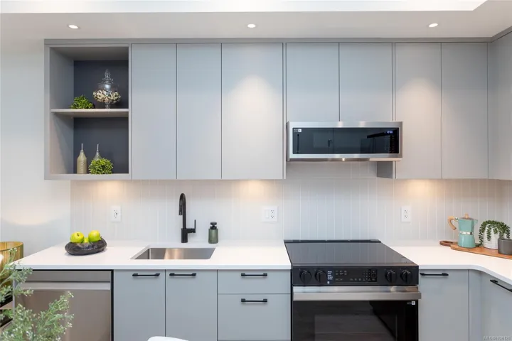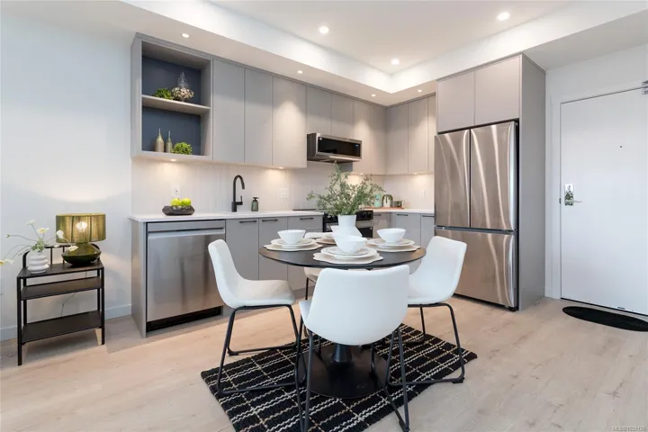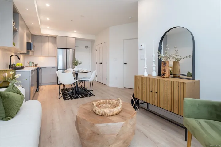 Welcome to this well designed South facing 1 bed/1bath condo in Central Block by Abstract. Over-height ceilings & expansive windows w/ views, this home is filled w/ natural light & offers a bright, airy feel. Designed w/ built-in storage solutions, the space is functional & stylish. The kitchen w/ quartz counters & contemporary stainless steel appliance pkg – perfect for cooking & entertaining. Step out to your large balcony w/ VIEWS of the Gorge – offering add’l living space & a perfect spot to relax. This unit comes w/ a parking stall (WITH an EV charger upgrade) & upgraded laminate in the bedroom. Residents enjoy an array of amenities incl. a stunning rooftop terrace w/ firepit, BBQ & panoramic views, landscaped gardens & an exclusive co-working space. Add’l conveniences incl. a Modo car share, storage locker, bike repair station & kayak storage. Located in a vibrant walkable community, this home offers modern living with value. Warranty transfers to new owner. Immediate possession!