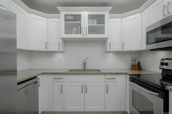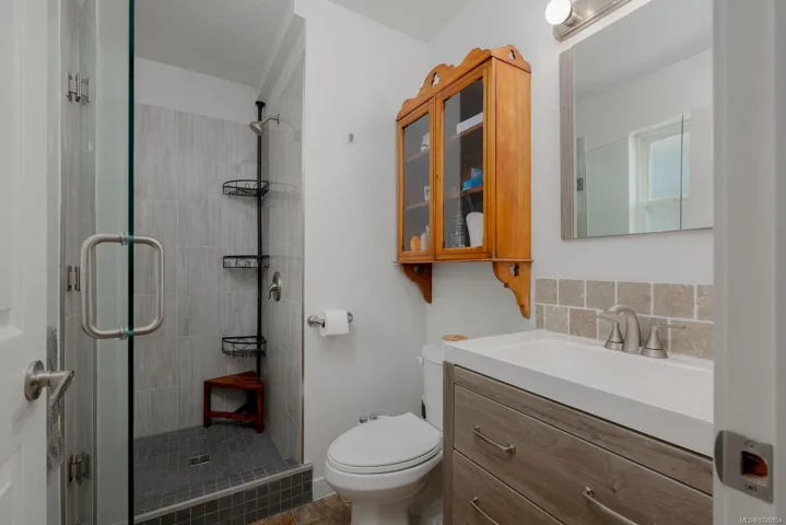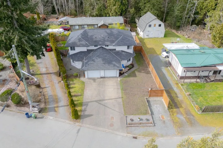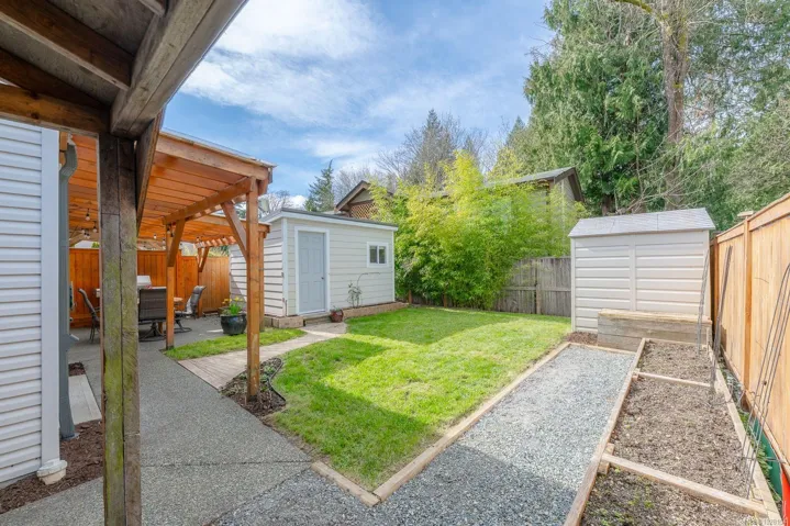 Immaculate and affordable half duplex with no strata fees in a quiet Chemainus neighbourhood, just minutes from schools and shopping. The main floor offers an open kitchen and dining area, living room, office nook, plus a 2-piece bath and laundry. Sliding doors from the dining area lead to a fully fenced, private yard featuring a covered patio, storage shed, wood storage, raised garden beds, and a heated studio—ideal as a guest room, office, or hobby space.