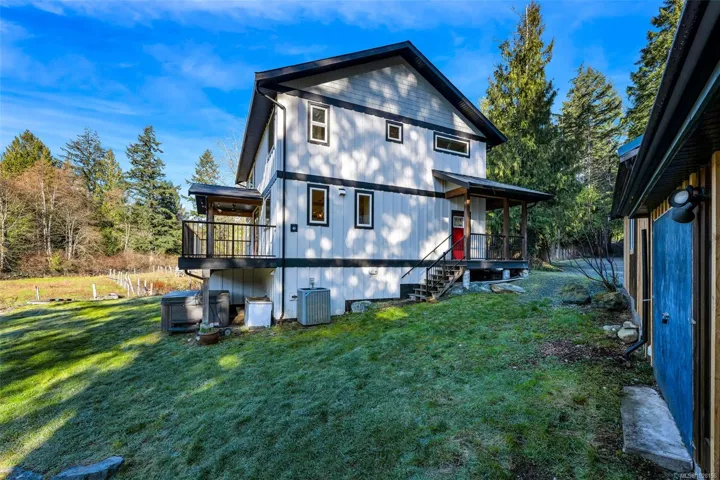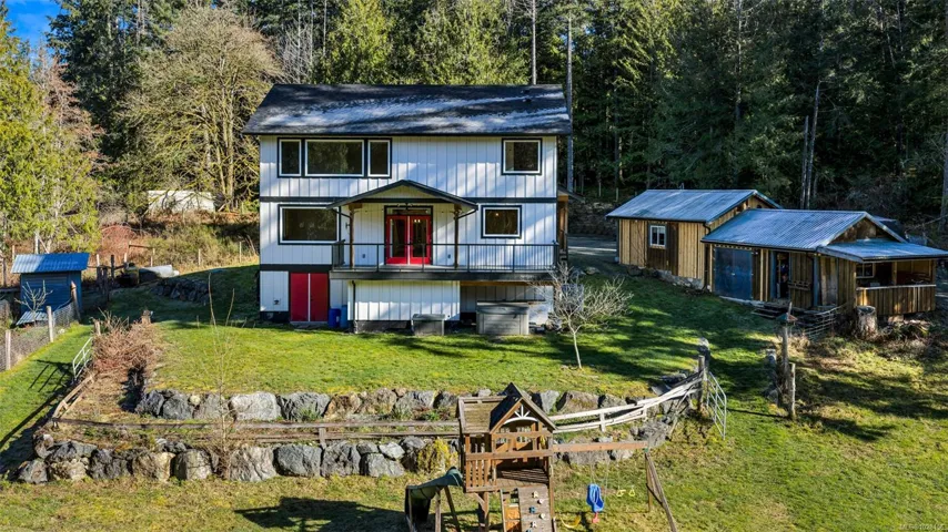 Custom Built 2357 Custom Built 5 bedroom home on 8.62 acres of flat some what cleared land with stream running though the property. We decided to call it a stream but its no trickle. Fish bearing coho, rainbow bass. Shallow well. New septic 2019. New home 2020 with balance of 2-5-10 warranty. Nine foot ceilings main floor 1200 Sq ft area. Upper 8 ceiling 1157 Sq ft. Flooring vinyl tile. Saltwater Hot Tub. Generac back up power system. Under Counter Fridge built into Cabinets plus a regular fridge. Countertop Manufactured Quartz like product. Water filtration system to balance PH as well as UV treatment. Hot water on demand in the kitchen. Heated tile floors in all bathrooms. Propane back up for heat pump. Smaller home finished area 576 Sq Ft. could be used as rental or visitors accomodation. Connected to septic and water supply. Wonderful swimming hole with beach area. Many great sitting spots to enjoy the sun and pastoral view. Built with new siesmic regulations with great care.