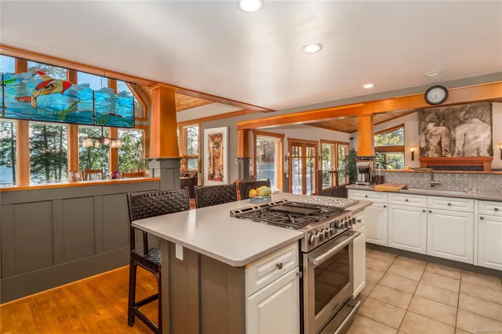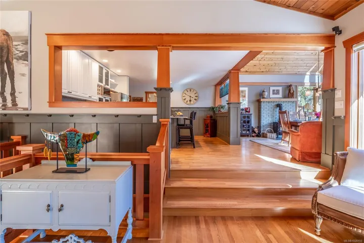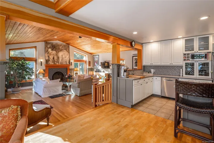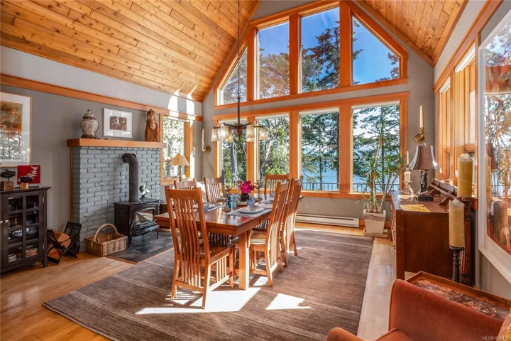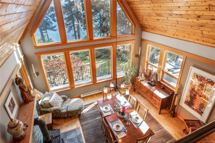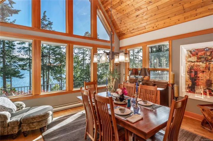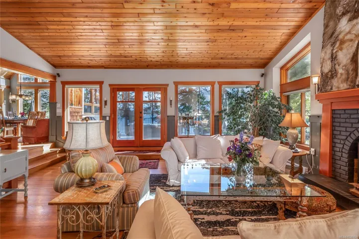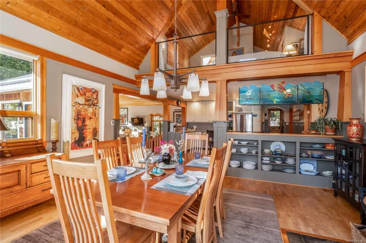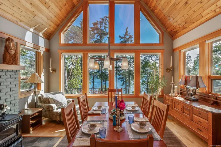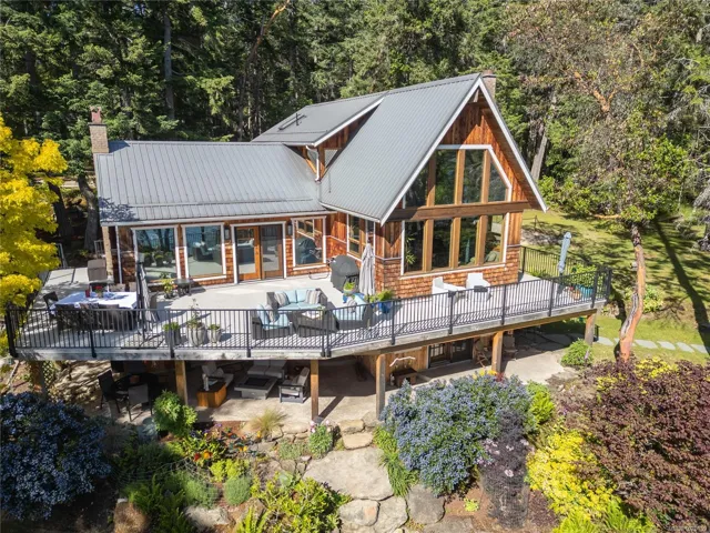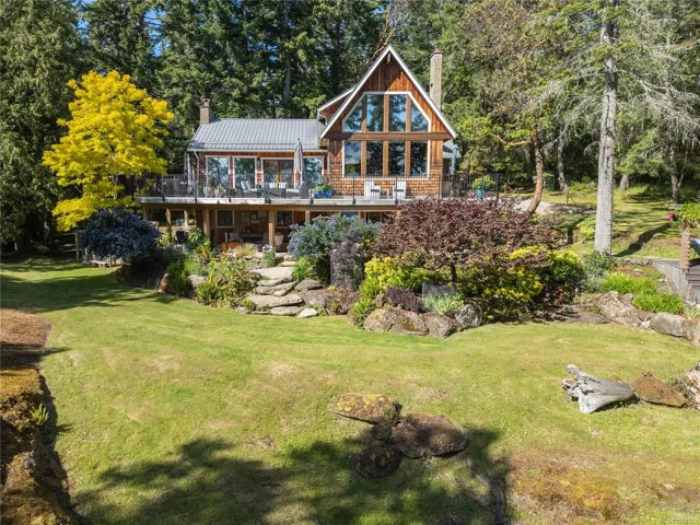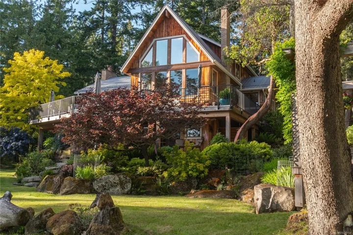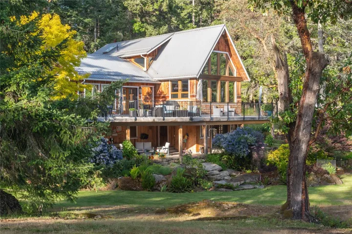Private Waterfront Sanctuary – Gabriola Island! You will love this immaculate Arts and Crafts masterpiece situated on 5 groomed southwest facing acres of rolling landscape with its own oceanfront cove and deep water dock. Step into this beautiful 3bed/3 bath home and enjoy the outdoors within with extensive windows, vaulted ceilings, hardwood flooring and wood finishing. Designed for entertaining, the open plan living areas are a delight with a chef’s kitchen, new top of the line appliances, wonderful dining room with new stove & surround, and luxurious spacious living room with access to the 1100+sqft ocean view deck. The open loft bedroom features spacious closets, lovely ensuite bath and spectacular views to wake up to. On the lower level, 2 bedrooms, extra full bath, a sitting area and a cozy covered patio. Enjoy the view hot tub, sauna, outdoor shower, pond, veggie garden and numerous spots for quiet reflection. Outbuildings: barn, workshop, tool shed. Easy access to Nanaimo