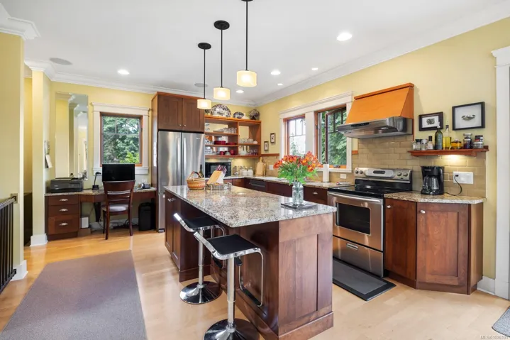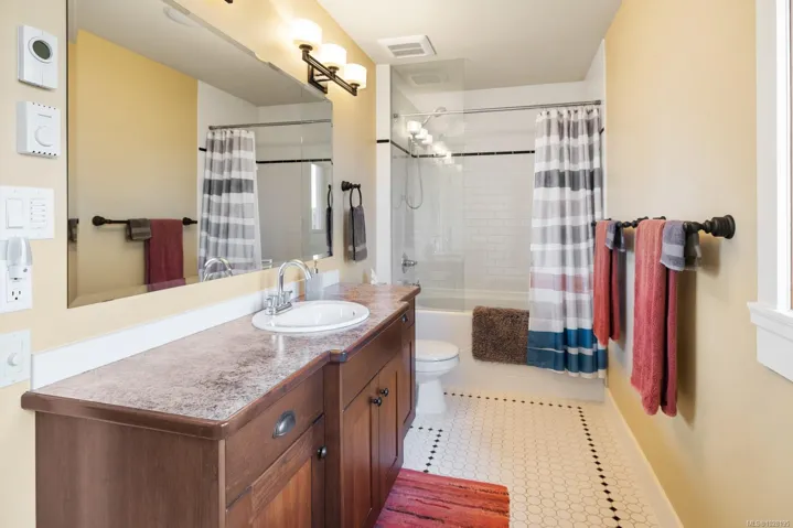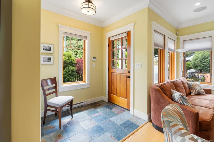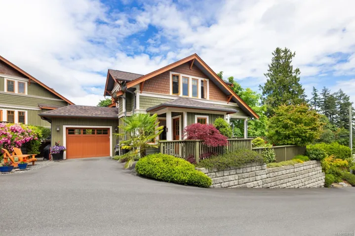 Absolutely perfect and move-in ready, this contemporary home offers stunning ocean views and a desirable location in the friendly, residential enclave of Bishop’s Green—just minutes from town. Immaculate and light-filled, the 2,083 sq ft layout spans three levels, featuring two spacious bedrooms each with their own ensuite baths. The upper-level primary suite includes a charming ocean-view veranda—ideal for morning coffee. Quality finishings throughout include a gourmet kitchen, rich wood trim and mouldings, and banks of picture windows that capture the coastal setting. The lower level offers a welcoming retreat for guests, while the professionally landscaped grounds feature natural rock walls, covered sun deck, private patios, and a storybook front porch. An attached garage and private driveway. New roof and heat pump in 2024. Ten min drive to ferries and walk to town. An exceptional opportunity for those seeking a low-maintenance, easy-care lifestyle in a “like new” view home!