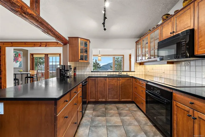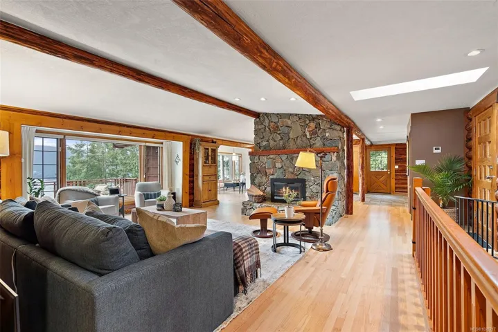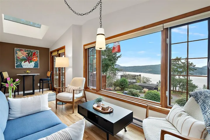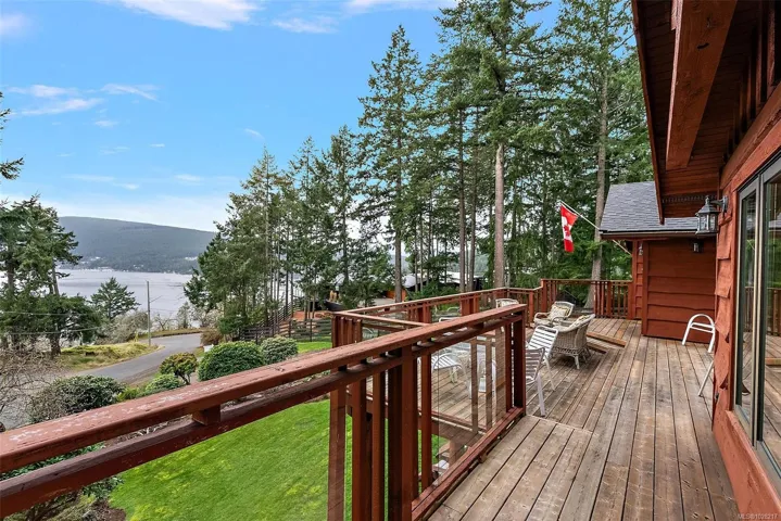 This home exudes charm and quality with luxury cabin retreat features set on prestigious Arbutus Point in beautiful Maple Bay. Nearly 3,000 sqft. of thoughtfully designed living space, this home captures the essence of refined West Coast living, while being meticulously maintained. Enjoy panoramic south facing ocean views. Expansive windows frame the water from nearly every angle in the home, seamlessly blending indoor comfort with the surrounding natural beauty. The lower level offers a self-contained suite, for guest accommodation/mortgage helper