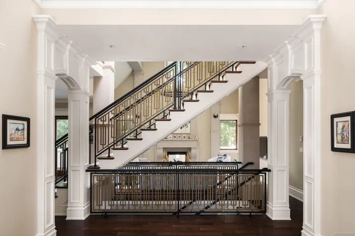 Discover this extraordinary custom-built home in the prestigious Uplands neighbourhood, a masterpiece of timeless luxury & award-winning design. Featured in architectural magazines & ‘Platinum Built Green’ certified, this estate offers unparalleled elegance w/ 2 separate gated driveways. Impeccable craftsmanship w/ Pella windows, cast limestone fireplaces, wrought iron details & crystal chandeliers. The gourmet kitchen features polished marble, high-end appliances & custom cabinetry. Maple hardwood floors, meticulous millwork, wainscoting, coffered ceilings & crown mouldings provide sophistication. The upper level includes 4 spacious beds; primary suite w/ lavish WIC, marble ensuite & cozy fireplace. The lower level features a billiards area, wine cellar, media room & gym. Outside, enjoy lush landscaped grounds, putting green, batting cage & sports court. The heated pool & stylish cabana feature an outdoor kitchen & fire table. 4-car garage w/ golf simulator and much more.