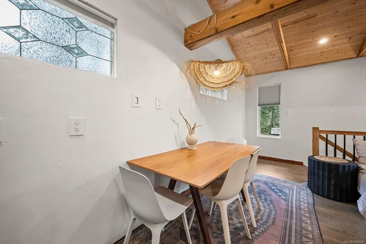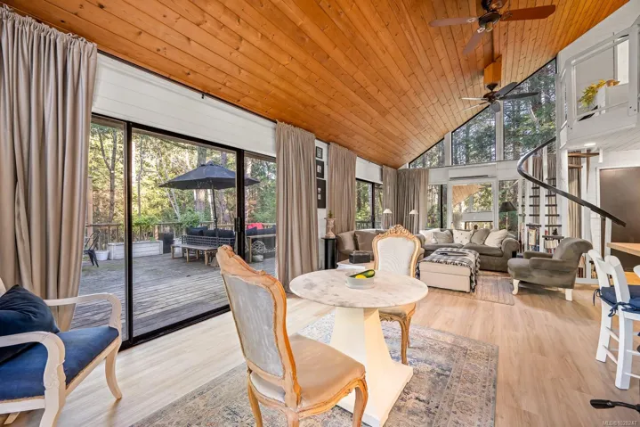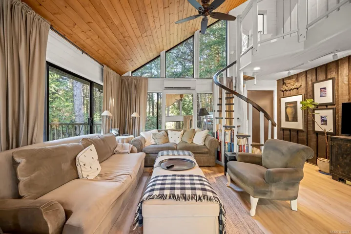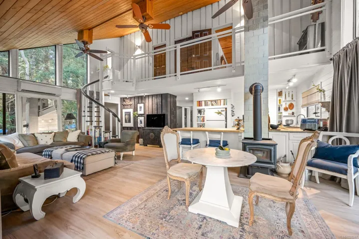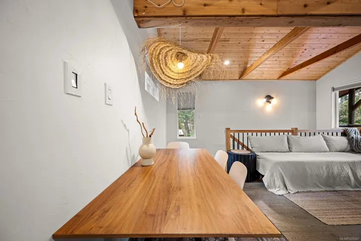 Set on quiet Brigantine Crescent and just a short walk to Hidden Beach, this beautifully updated home offers a perfect blend of west coast architecture and contemporary interior design. Vaulted wood ceilings, expansive windows, and a thoughtfully designed interior create a bright, inviting space that feels both modern and relaxed. The open concept kitchen, dining, and living room centres on a cozy woodstove and opens onto a spacious deck, creating an ideal setting for everyday living or entertaining. A separate studio provides exceptional bonus space. Self-contained with its own bathroom and vaulted upper level, it is ideal for artists, creative pursuits, or comfortable overflow accommodation for guests. The yard is low maintenance and thoughtfully set up for families, with plenty of space for kids to play and areas to relax or gather outdoors. This home, studio, and property offer a wonderful place to settle in and enjoy the best of island life.