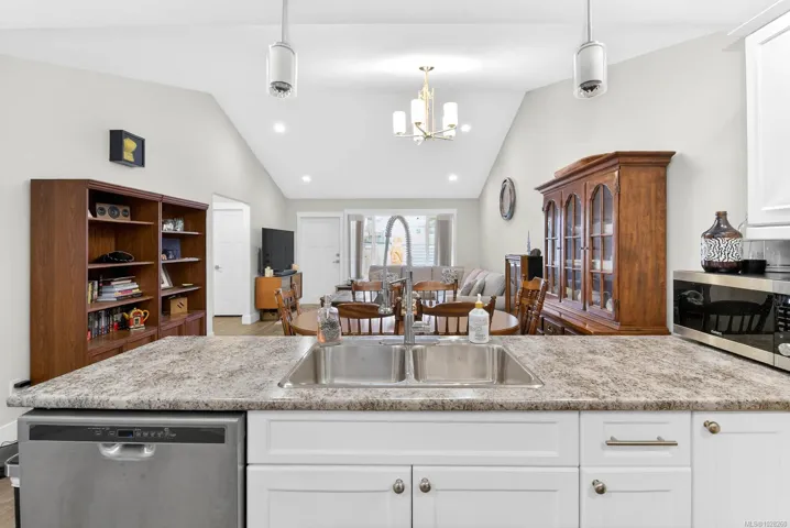 Immaculate Half Duplex conveniently located close to shopping, services, recreation facilities and public transit. This newer (2017) home features a welcoming entrance, an open concept living room – dining area – kitchen, two bedrooms and two full – four piece baths. The kitchen is nicely appointed and newer appliances are included. The living room and dining area has a vaulted ceiling which makes for a very spacious living environment. Heat pump provides year round comfort, in ground sprinkler system keeps the outdoor plants watered. An attached single garage, a garden shed, a private patio area with low maintenance, fenced back yard with circular walkway and garden space completes this package. Worry free living at its best.