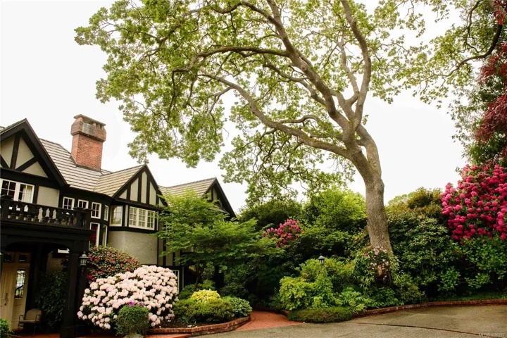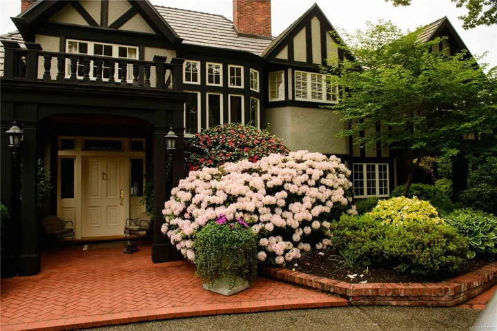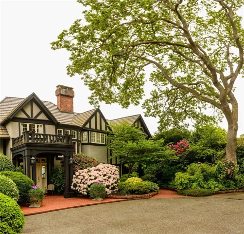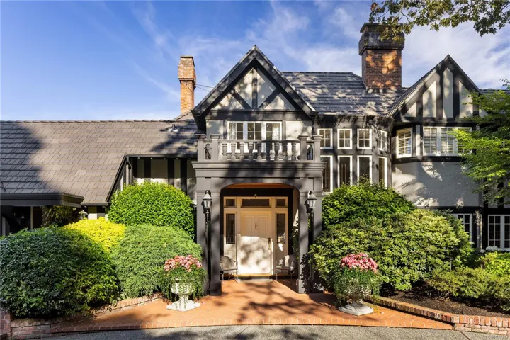 Set on a private 1.084-acre lot along a tree-lined street in Uplands, this 1914 Tudor home offers a rare blend of historic charm and refined modern living. Substantially renovated with the finest materials while carefully preserving its original heritage character, classic architectural elements are complemented by sophisticated updates, creating a warm and inviting residence designed for both everyday living and entertaining. The landscaped gardens provide a tranquil retreat, complete with a tennis court, greenhouse, detached double garage, and a self-contained lower suite ideal for in-laws or visiting friends. From the property, enjoy uninterrupted water views, enhancing the home’s extraordinary setting. The property also presents future development potential to subdivide into three lots: 2 stratified lots + SFD lot. A truly special offering that combines heritage beauty, exceptional privacy, spectacular views & outstanding potential in Victoria’s most coveted neighborhood.