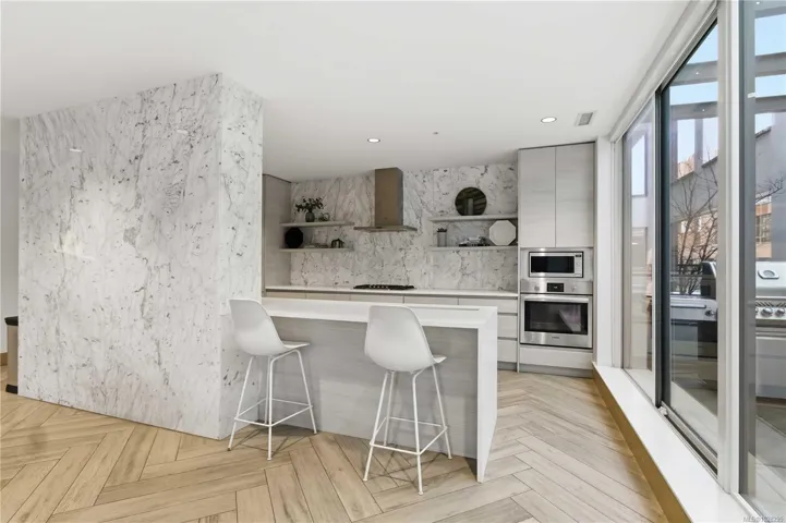 Welcome to the Executive 21st Floor at 777 Herald Street, offering lovely water, city, and mountain views. This executive 2-bedroom, 2-bathroom residence includes the rare bonus of two side-by-side secure underground parking stalls. Thoughtfully upgraded with custom touches, the home features built-in closet organizers, a custom desk/workspace, and stylish deck flooring. Custom built Restoration Hardware furnishings are available for purchase, offering a turnkey opportunity. The layout is perfect for entertaining, with a large island, quartz countertops, built-in appliances, and floor to ceiling windows. With exceptional amenities including a gym, yoga studio, sauna, lounge with full kitchen, business centre, hobby room, and a landscaped outdoor terrace with BBQ, dining area, children’s play space, and fire pits. A private guest suite is also available for visiting family and friends. Located just steps from a grocery store and within easy walking distance to all downtown amenities.