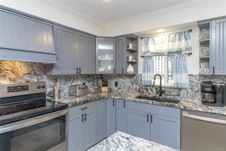 Incredible value in the heart of Chemainus! COMPLETELY REMODELLED, Large yet quaint main level entry home with separate, lower walk-out suite and a massive detached 30’11×22’10 garage with 10ft doors, and lots of windows. The main flooor of this home offers great opportunity for a family with ample living space, vinyl floors, open plan kitchen & dining, laundry, 3 bedrooms, 2 full bathrooms, fireplace and expansive rear sunny patio. The kitchen is totally remodelled with beautiful grey cabintry and gorgeous granite counter-tops. The ensuite is truly a retreat to behold. The lower level offers an oversized bedroom, large living room, bathroom, laundry, kitchen and storage. The back yard offers room for all your toys and RV parking, The MASSIVE detached shop can accommodate a woodworking shop or a mechanic’s dream scenario. The home is positioned on a quiet culdesac within a short walk to shopping, dining and desirable Mount Brenton golf course.