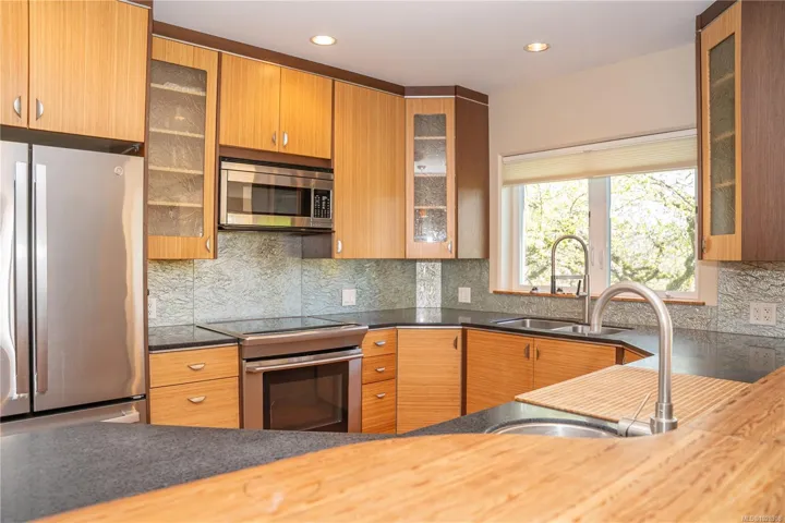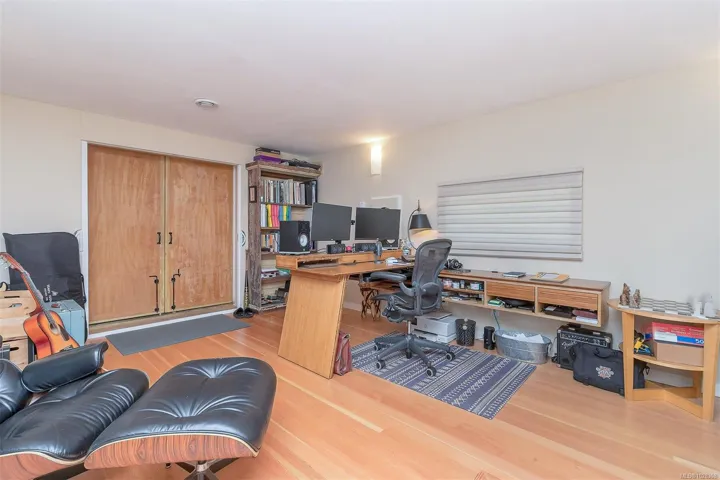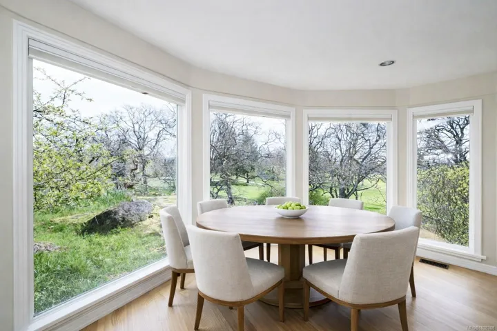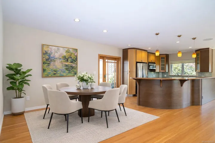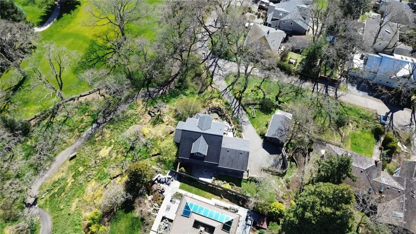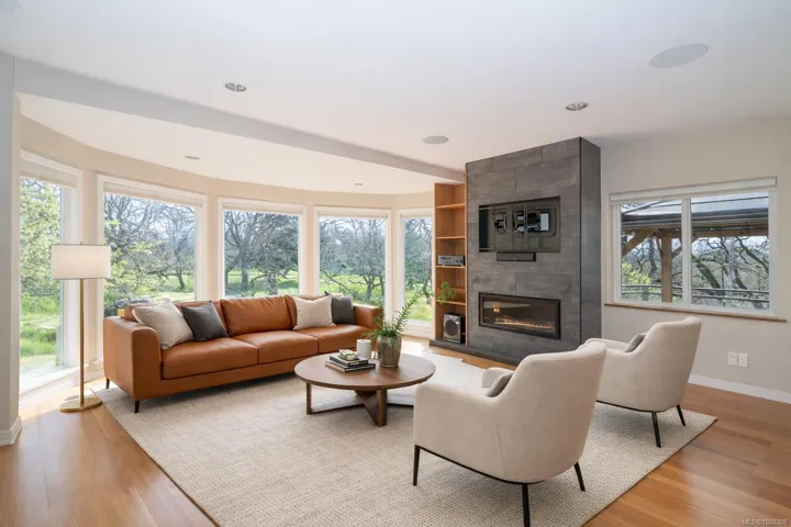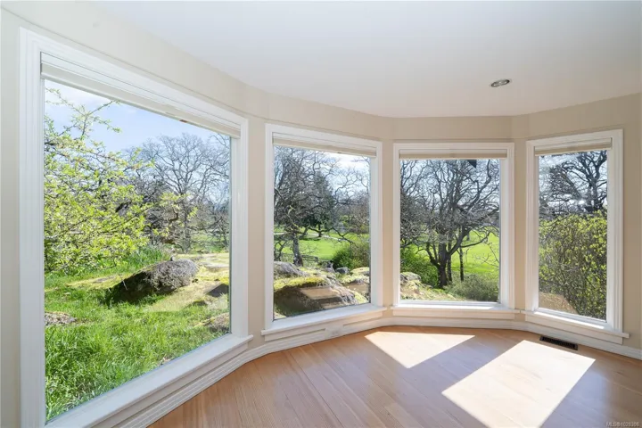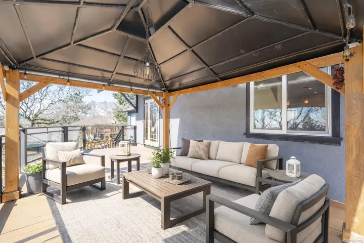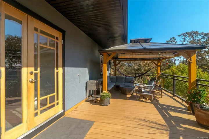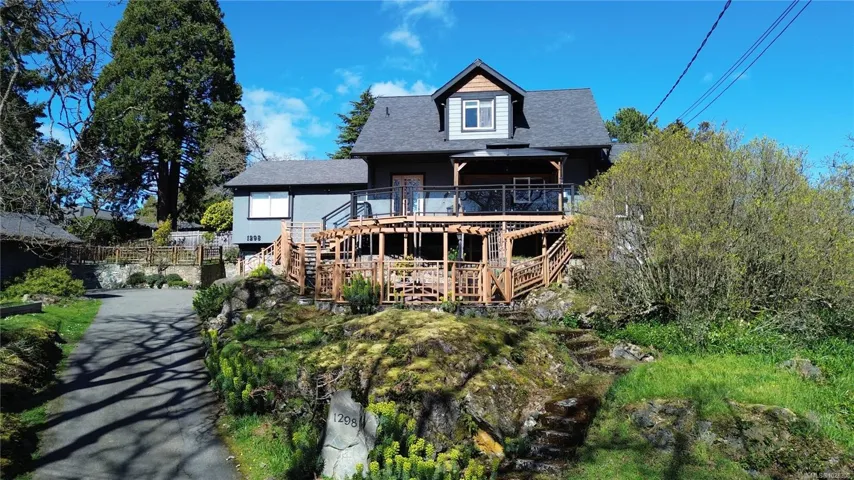 SOUTH-FACING HOME OVERLOOKING CEDAR HILL GOLF COURSE! Nestled in a Garry Oak meadow & perched on a sunny knoll, this beautifully updated home (2013) offers over 2300 sqft of bright, functional living. The open main level features a designer kitchen with custom milled cabinetry, stainless appliances, & built-in desk/work area. Expansive picture windows flood the home with natural light while capturing stunning views toward the Olympic Mountains. Gleaming fir floors & a propane fireplace add to the comfort, while the sun-drenched front deck is a standout feature, complete with gazebo. Backing onto Cedar Hill Park, the property enjoys a rare sense of space & privacy, feeling like your own private half acre. 4 bedrooms plus den/office, 2 full baths, and a detached sound-insulated studio perfect for an office. Beautifully landscaped lot with raised beds, edible garden, & slate patio. A lifestyle property minutes to downtown, trails, schools, and amenities.