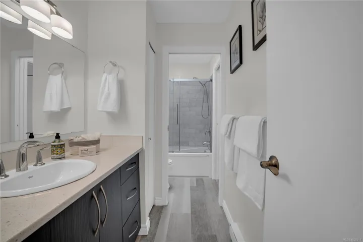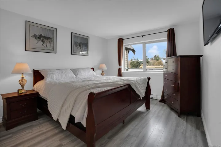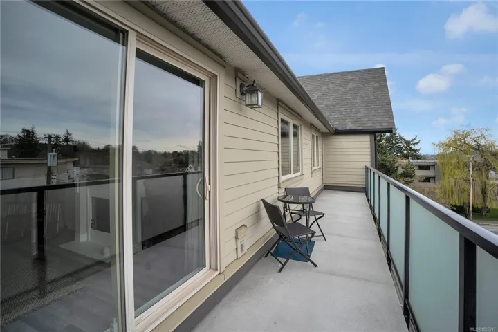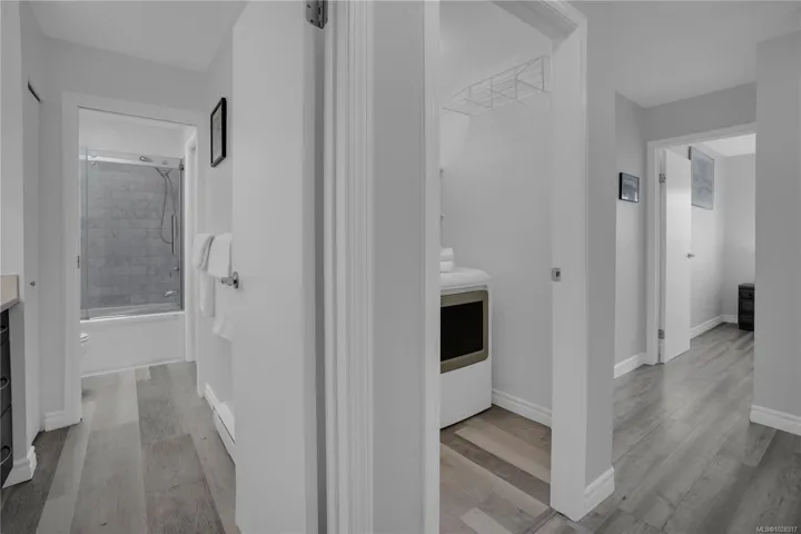 NEW LISTING — Top floor east facing renovated 2 bed 1 bath w/laundry. Open floor plan, updated flooring no carpet. Updated kitchen w/stone counters, SS appls & custom cabinets. Large living rm w/wood burning FP & office nook, skylight. Deck for entertaining & BBQs, no immediate front neighbours. Spacious primary w/large closet & ensuite w/soaker tub, glass doors & updated fixtures. Large main bath. Walk-in laundry rm w/full size appliances & shelving. Storage closet. Open dining area. Secure entrance, u/g pkg, visitor pkg, bike storage, storage lkr. Well maintained bldg, healthy strata, quiet neighbourhood, guest suite. Fully remediated bldg in excellent condition. Walk to Cook St, Oak Bay & Jubilee Hospital. On major bus routes. Easy to view.