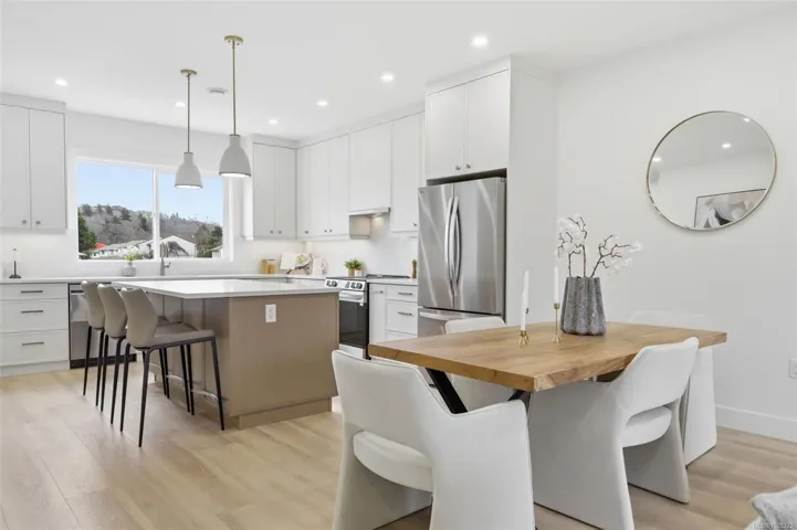 Discover modern living at 621 Broadway Street. These beautifully designed townhomes offer nearly 1,700 sq ft with 4 bedrooms and 4 bathrooms, ideal for families or those needing extra space. The bright open concept main floor features warm wood tones, designer finishes, and elegant black and gold accents. The kitchen is built for entertaining with quartz countertops, a large island, and sleek cabinetry. Upstairs offers spacious bedrooms, including a stunning primary suite with a stylish ensuite. Each home includes a private fenced backyard, perfect for outdoor living, pets, or relaxing evenings. Additional features include energy efficient heat pumps, EV charging capability, and a large driveway with easy access. Conveniently located near schools, transit, parks, and minutes to downtown Victoria. May qualify for the New Construction Property Transfer Tax Grant and First Time Homebuyer GST Rebate. Buyer to verify eligibility with their accountant or lawyer.