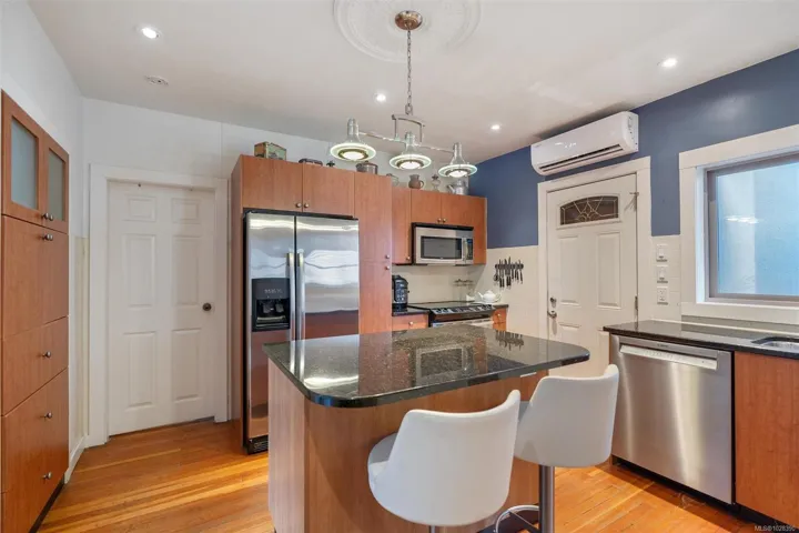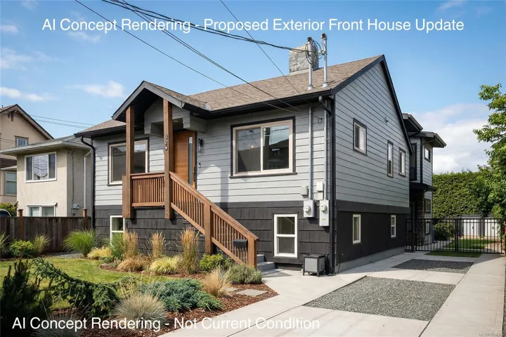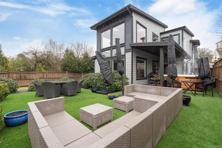 Rare property offering 3 SEPARATE LIVING SPACES, ideal for multigenerational living or the flexibility to live in one and rent the other.The charming 1930s front bungalow offers 4BD/3BA with 2 bedrooms on the main floor plus a lower level with 2 additional bedrooms, living room, bathroom and separate side entry.The stunning 2012 West Coast contemporary main house features polished concrete and natural bamboo hardwood floors, 3BD/3BA, vaulted ceilings and expansive windows opening to a private backyard oasis perfect for summer entertaining and relaxing evenings.A detached garden suite provides a third self-contained dwelling with kitchen, bathroom and loft sleeping area.Extras include heat pumps in all three dwellings, gas fireplaces in the bungalow and main house, hot tub with outdoor shower and storage sheds.Located just minutes to downtown Victoria, with restaurants, shopping and great schools within walking distance.A unique and versatile property not to be missed!