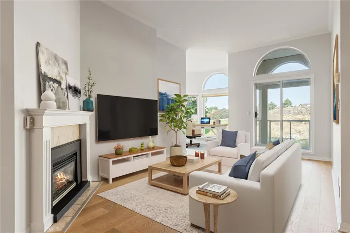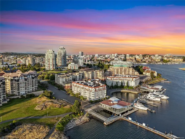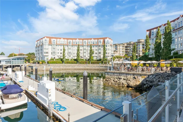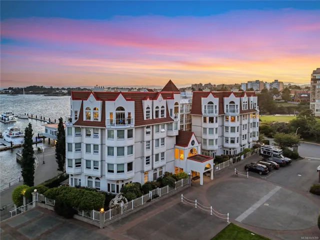 *OPEN HOUSE SUNDAY 12:00 – 2:00pm* Experience luxury coastal living at Royal Quays, an executive ocean view condominium in the coveted Songhees waterfront community. Just a short stroll along the scenic oceanfront walkway to downtown Victoria, shops, and award-winning dining. This beautifully updated 1 bedroom plus den, 2 bath residence is southwest-facing, offering breathtaking ocean and sunset views. Soaring 11-foot ceilings and expansive windows flood the space with natural light. Upgrades include new engineered hardwood floors, fresh paint, new carpet, modern light fixtures, & refreshed kitchen with new countertops and backsplash. The spacious living room features a cozy gas fireplace, with gas included in the strata fee. Secure underground parking with EV rough-in, kayak storage, bike storage, pets & BBQs allowed, & a proactive strata with strong financials. Truly move-in ready, an exceptional opportunity to live in one of Victoria’s most sought-after waterfront neighbourhoods.