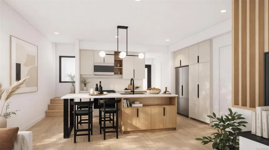 Welcome to Nalu at VicWest. “The Edward” is the collection’s signature residence, a 3-bedroom plus flex, 2.5-bathroom home spanning three levels. Featuring Stunning West Coast Architecture and Scandinavian design, this home offers front and rear patios plus an expansive south-facing balcony off the primary suite. The main level offers a sleek kitchen and integrated living area with high ceilings and abundant natural light. The second floor has two bedrooms overlooking a tree lined street, while the top level is dedicated entirely to the luxurious primary suite. This private retreat features vaulted ceilings, panoramic Olympic Mountain views, and a spa-like ensuite with a separate soaker tub. Located in the heart of Vic West, you are steps from Market Garden, Westside Village, and the Selkirk Trestle. Enjoy easy access to the Galloping Goose and Gorge waterway. Only 5 minutes by bike to downtown Victoria, and includes a private, secure e-bike garage with a dedicated plug-in and storage.