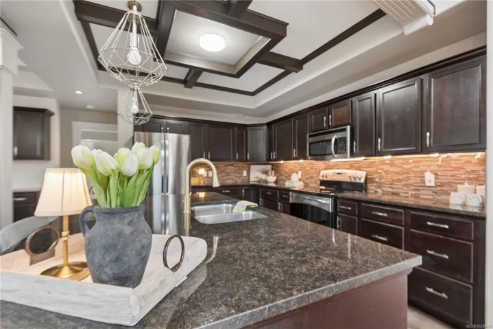 Outside, the level backyard offers plenty of room to enjoy, play, or entertain, while the oversized double garage provides excellent storage and parking. Located in family-friendly Mill Springs Village near Deloume Trail and Park, this home offers comfortable living in Mill Bay within the Cowichan Valley.
