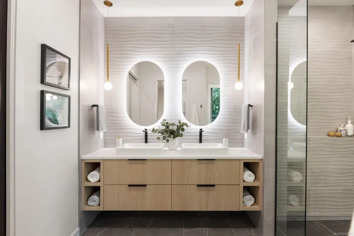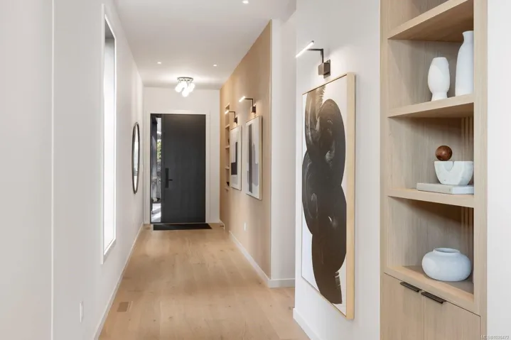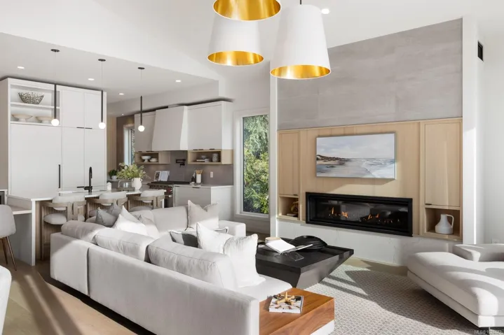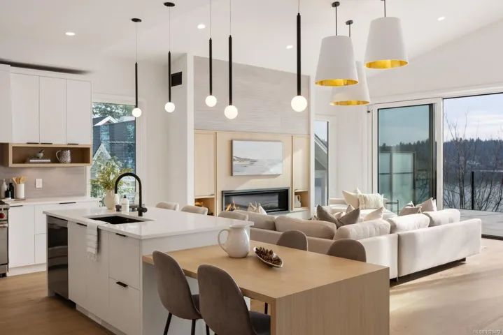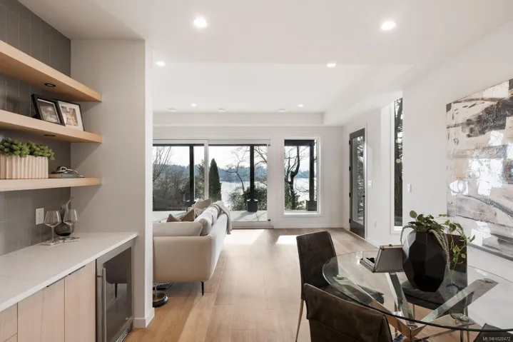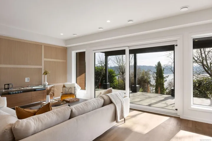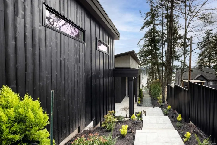 Set on 0.37 acres of southwest-facing waterfront in the coveted Deep Cove neighbourhood of North Saanich, this brand-new contemporary home offers protected ocean views, warm evening sun, and breathtaking sunsets. Built by Villamar Homes, the 3,151 sq.ft. residence blends refined modern design with natural coastal textures. The open-concept main level features soaring 10’–16’ ceilings, oversized sliding doors, and seamless indoor-outdoor living to a 400+ sq.ft. oceanfront sundeck. The primary bedroom is conveniently located on the main floor with a private courtyard and spa-inspired ensuite. A gourmet kitchen with premium appliances anchors the living space, ideal for entertaining. The lower level offers 10’ ceilings and a flexible layout with potential for a guest or family suite. Enjoy direct beach access for kayaking and paddle boarding, all within an idyllic, walkable seaside community just minutes to local beaches, winery, and café.