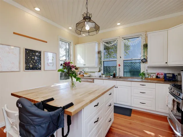 Gorgeous Queen Anne Heritage designated home in sought after Fernwood. Home has been extensively renovated to create 2 wonderful living spaces. You’ll love the heritage touches including stained glass & fir floors. You’ll appreciate the thoughtfully fully irrigated landscaping with raised beds, perennials, edibles & productive fruit trees. No shortage of outside spaces either with west facing patio, deck & sunroom between the 2 units. Inside, both homes enjoy large, updated kitchens that are the heart of the homes. There’s also lots of light in the home with lots of large windows & 9-10′ ceilings on the main & 2nd floors. The loft area adds 2 more beds & a 2 pc bath. The upper suite bath was featured in a magazine. Both suites enjoy their own laundry & entrances. Renovations included full insulation, updated plumbing & electrical, gas furnace & the exterior has been just repainted. Fulll crawlspace provides plenty of storage. Enjoy walkable Fernwood & all that it offers!
