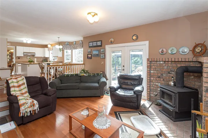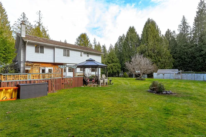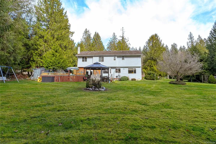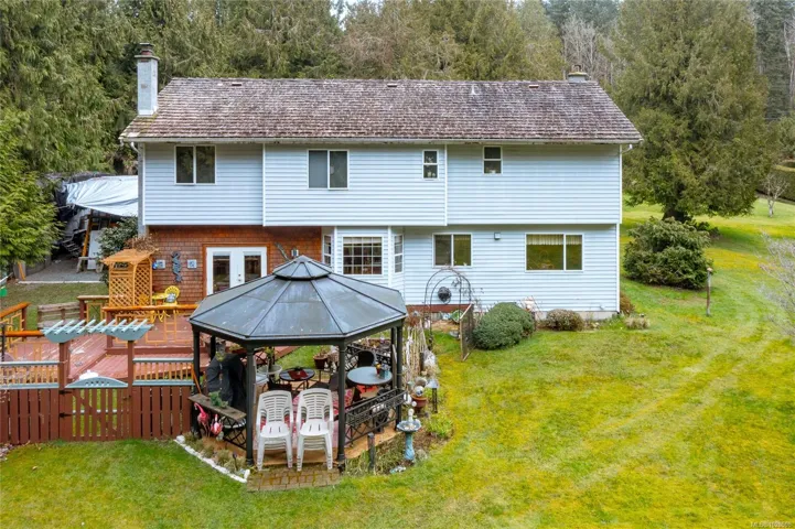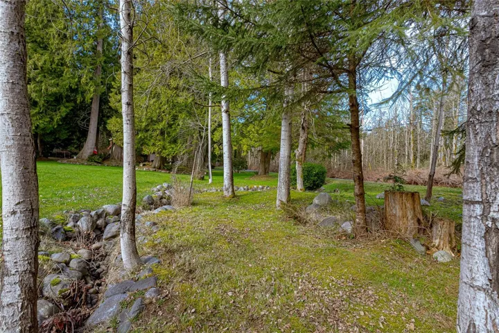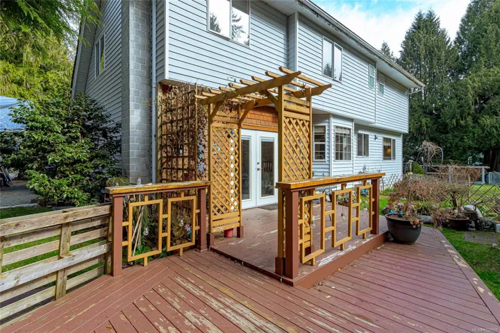 Access off the family room is a large outdoor living space perfect for family gatherings and enjoying nature. The property is level and borders on a creek. A double attached garage plus ample parking for your toys. Saltair offers easy access to local beaches , Princess Diana Park, making it an ideal choice for those seeking both tranquility and privacy. The zoning allows for a 2nd residence or carriage house.