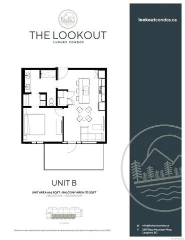 MOVE IN READY! SHOW SUITE now open 12-2pm (Thursday, Friday & Saturday) THE LOOKOUT by Aquila Pacific — luxury mountain living at its finest. Nestled among the trees, this community offers sweeping views of Florence Lake, Olympic Mountain Range & Mount Baker. Thoughtfully designed 1, 2 & 3 bedroom homes feature a premium integrated appliances & high-quality fixtures & finishes – no detail overlooked. Whether you’re after stunning views, convenient location, an amenity-filled building or larger units with patios, there’s a floor plan to suit every lifestyle – including select homes with massive patios & exterior access ideal for entertaining! Residents enjoy amenities not found in many buildings: lounge with test kitchen, outdoor patio & party room, observation deck, fitness studio + yoga room, bike-tuning area & pet-washing station. With quick access to the highway & Bear Mountain recreation,THE LOOKOUT blends the convenience of urban living with the tranquility of a mountain retreat.