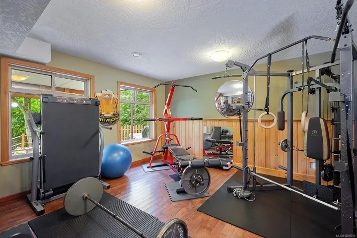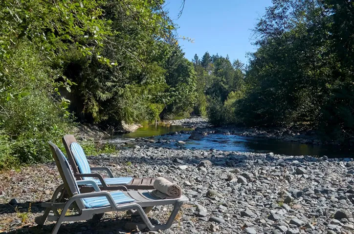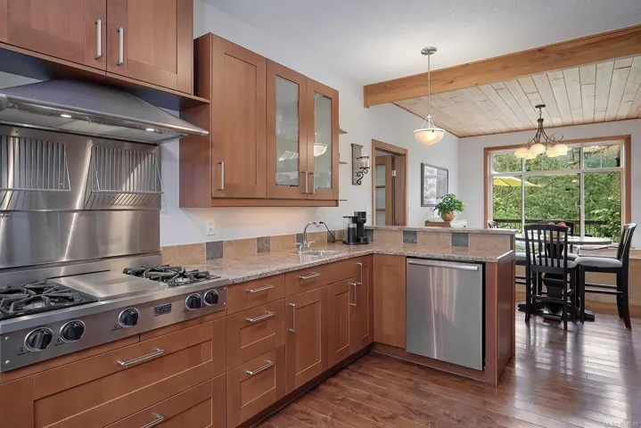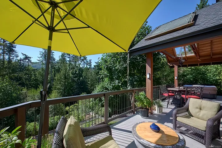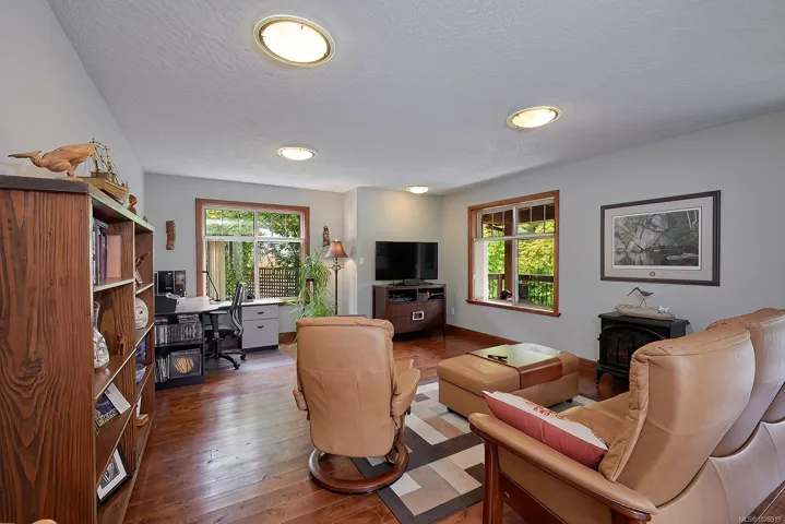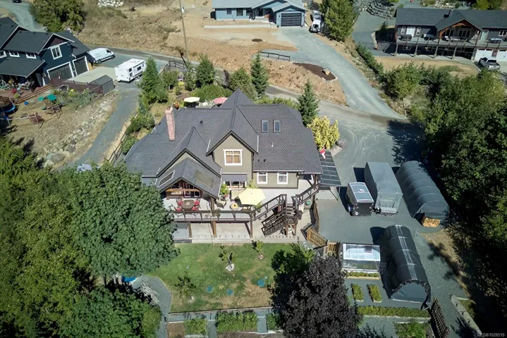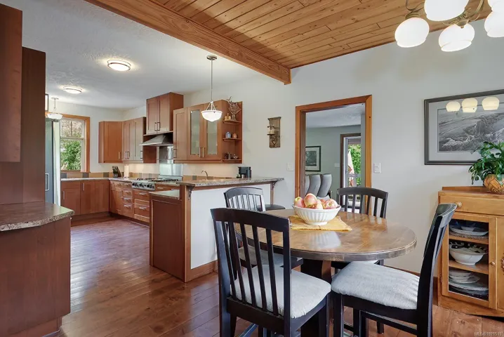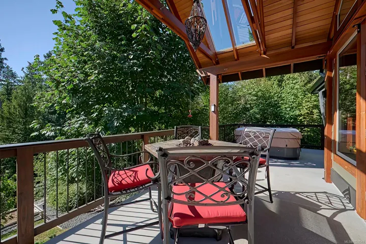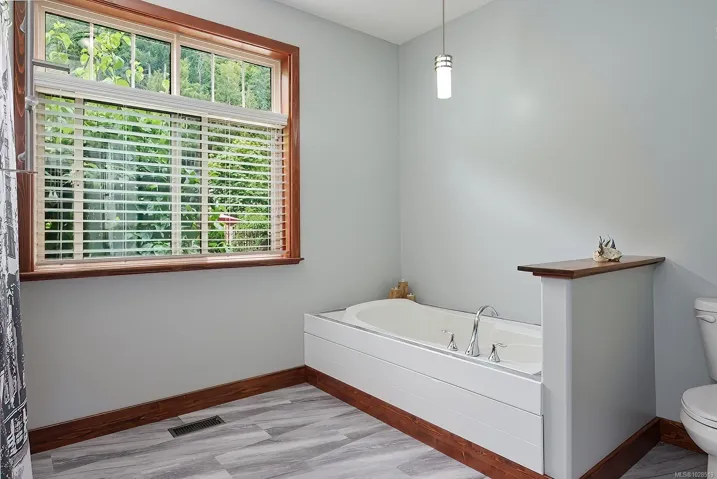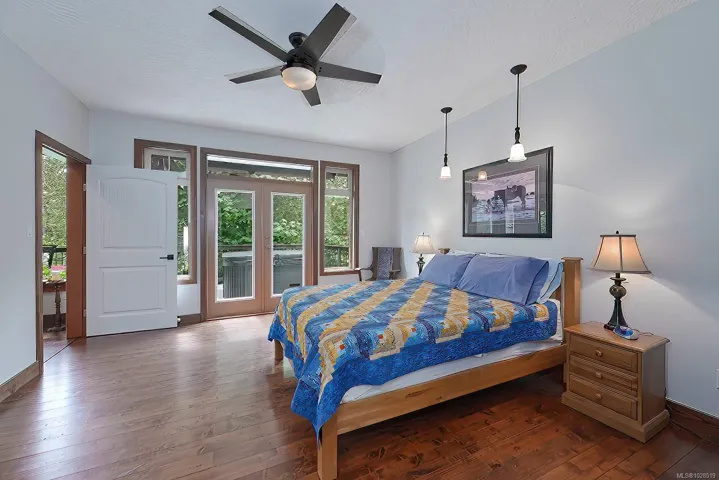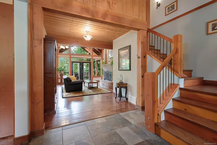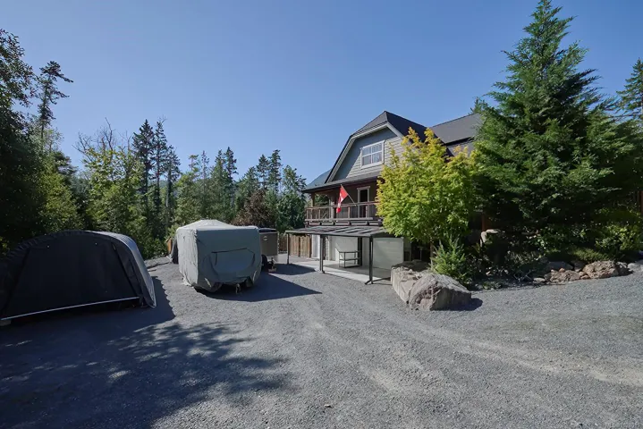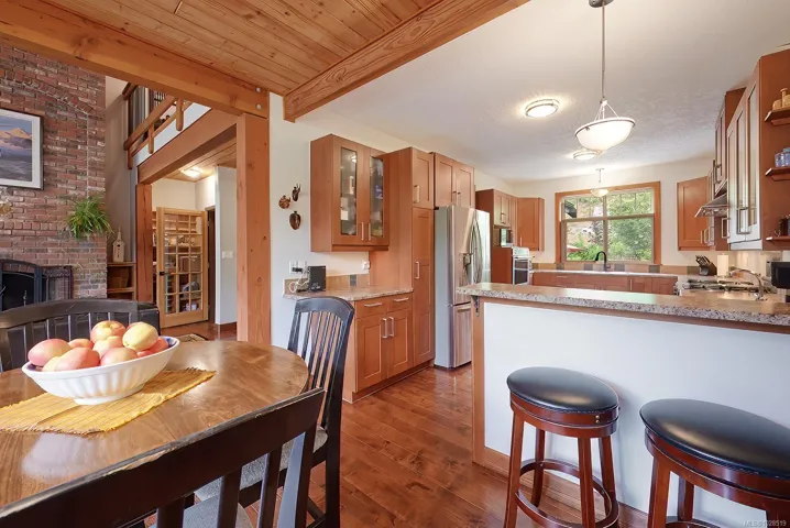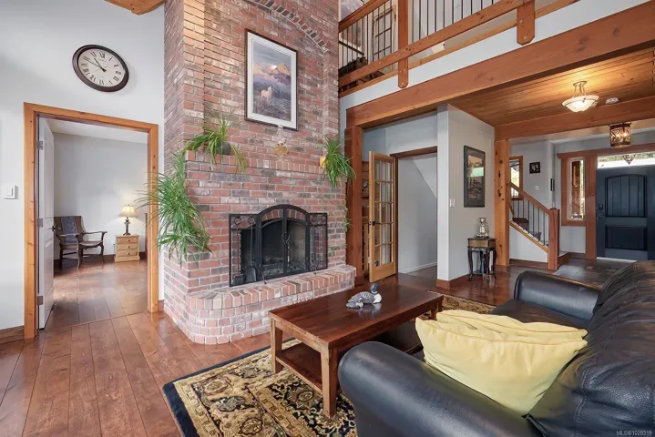 Country charm meets space and privacy in this impressive 3,845 sq. ft. family riverfront home set among beautiful natural surroundings. Designed for comfortable family living and entertaining, the home features 5 bedrooms and 4 bathrooms along with multiple gathering spaces including two family rooms, a media room, and a recreation room. The living room is the heart of the home with a soaring cathedral ceiling, hardwood floors, large windows, and a cozy wood-burning fireplace, while a wood stove downstairs adds extra warmth and character. The main-floor primary bedroom and laundry provide everyday convenience. Step outside to a wrap-around deck overlooking trees and the peaceful setting, or gather around the front patio fire pit. Practical features include RV parking with power and clean-out, a strong 70 gpm well, heat pump with A/C and wood/electric backup, generator plug, 240-volt garage outlets, several updates, and a relaxing 5-person hot tub. Near Little Qualicum River Falls