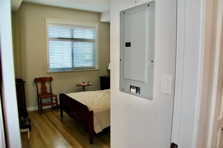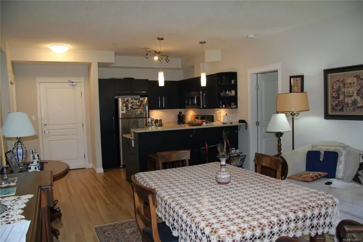 Spacious well-maintained 2-bedroom, 2-bathroom condo located on the quiet side of Meredith Courts. This unit offers an open-concept floor plan with a modern kitchen featuring stainless steel appliances and ample counter space. The kitchen flows into the combined living and dining area, which includes a stone-surround fireplace and access to a covered balcony. The primary bedroom includes a walk-in closet and a 3-piece ensuite. The second bedroom is located on the opposite side of the unit for added privacy. A 4-piece main bathroom and in-suite laundry complete the interior. Meredith Courts is a family-friendly complex with amenities including a playground, gazebo, bike racks, and a clubhouse with a fitness area, games tables, and a lounge with a fireplace. Centrally located near shopping, schools, public transit, and within minutes of the University and Nanaimo Regional General Hospital.