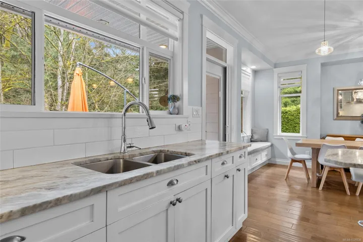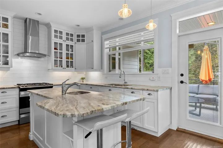 Welcome to this beautifully crafted 5 bedroom, 3 bathroom home in the heart of Mill Bay, where thoughtful design and timeless character come together creating the perfect home. From the moment you enter, you’ll notice the soaring ceilings, stained-glass accents, and charming window seats that add warmth and character. The main living areas are bright and inviting, highlighted by granite countertops and quality hardwood floors that show every detail has been carefully considered. The functional layout offers 3 bedrooms and 2 bathrooms upstairs, including a spacious primary retreat on the main level. Downstairs you’ll find a self-contained 2 bedroom, 1 bathroom in-law suite with a separate entrance, ideal for extended family, or income potential. A versatile flex space downstairs is perfect for a home gym, kids’ playroom, or hobby space. Outside there is a lovely deck and patio for entertaining. Follow the path through the hedge to a parkette -making this property extra special!