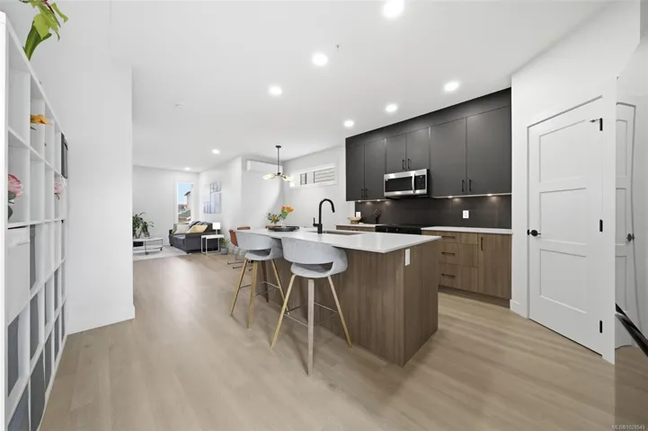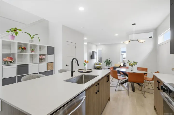 Discover a Hampton, a 4-bedroom home plus a spacious family room and additional office, including a 1-bedroom suite. Feels like a detached home, with only one shared wall with neighbours and no strata fees. Ideally positioned corner unit, this home blends thoughtful design with modern living. The main level features a spacious layout with a living room, modern kitchen and a dining area, along with an office perfect for working from home. Upstairs you will find 3 bedrooms, 2 baths, laundry room and a generous family room. Master bedroom includes a walk in closet and spa-inspired ensuite with dual sinks and a modern tiled shower. The lower level offers a fully self-contained 1-brm suite ideal for guests, or mortgage helper. Include a detached garage, lots of parking, landscaped backyard with an irrigation system, and GST already paid. Enjoy a coastal lifestyle just steps from the ocean, sandy beaches, parks, scenic trails, and the vibrant Commons Retail Village.