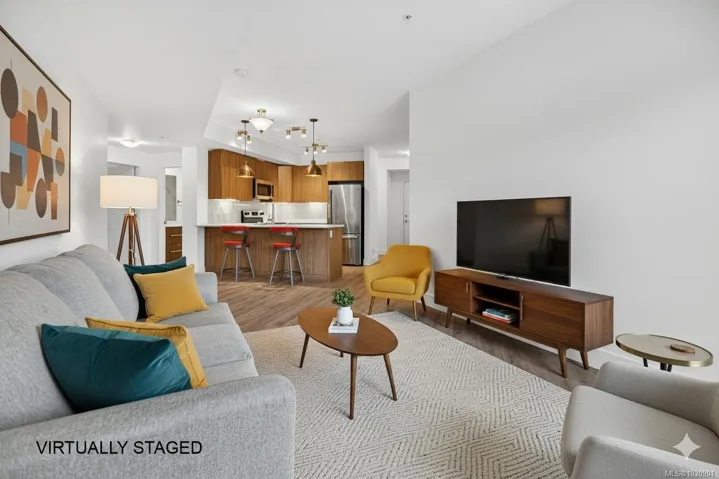 Discover easy living in Newport Village with this bright ground-floor corner home, filled with natural light from large surrounding windows. The open-concept kitchen features quartz countertops and flows seamlessly into the dining and living areas, creating a welcoming space for everyday living and entertaining. Heated floors add comfort in both bathrooms and the laundry room, while the bathrooms showcase quartz counters, undermount sinks, and sleek glass shower doors. The spacious primary bedroom includes a walk-through closet leading to a four-piece ensuite. Step outside through your private patio entrance with its own gate—perfect for quick access to nearby walking trails and ideal for pet owners or anyone who enjoys the outdoors. Conveniently situated near Walmart, Driftwood Mall, the Courtenay Airpark, and the Millard Creek trail network.
